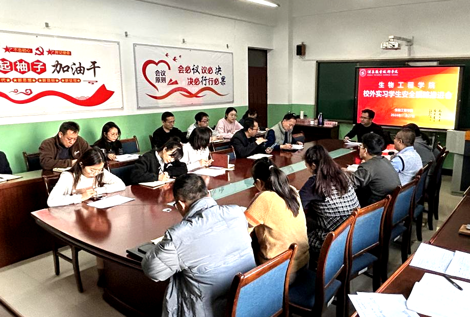 为进一步加强校外实习学生安全管理,确保实习工作顺利进行,2024年11月27日,生物工程学院召开校外实习学生安全跟踪推进会。畜牧兽医系、生物技术系全体实习指导老师参会,副院长庞捷主持。