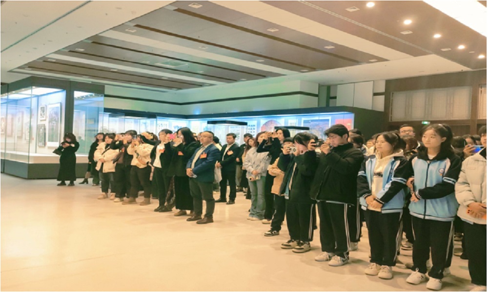 活动当天,博物馆内人头攒动,艺术氛围浓厚。旅游管理一班的学生们身着统一的校服,秩序井然地步入展厅。在老师的引导下,同学们首先听取了博物馆工作人员对展览的详细介绍,了解了每一幅作品背后的历史故事和艺术价值。从古代丝绸之路的繁荣景象,到现代航天事业的飞速发展,一幅幅生动的画作和书法作品仿佛在诉说着酒泉这座城市的辉煌历程。