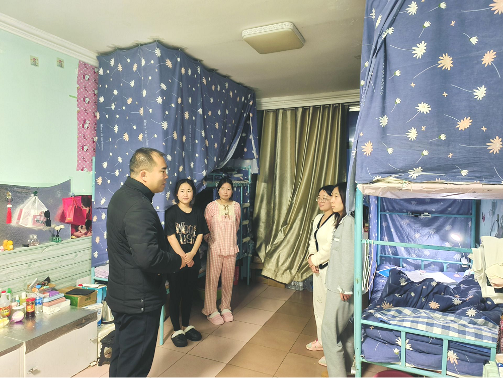 此次安全检查,以降低安全风险为出发点,深入学生宿舍开展安全隐患排查和冬季安全教育,上报维修项目11项,走访慰问住宿学生54人,传递了学校对实习学生的关心,进一步增强了实习生的安全意识。