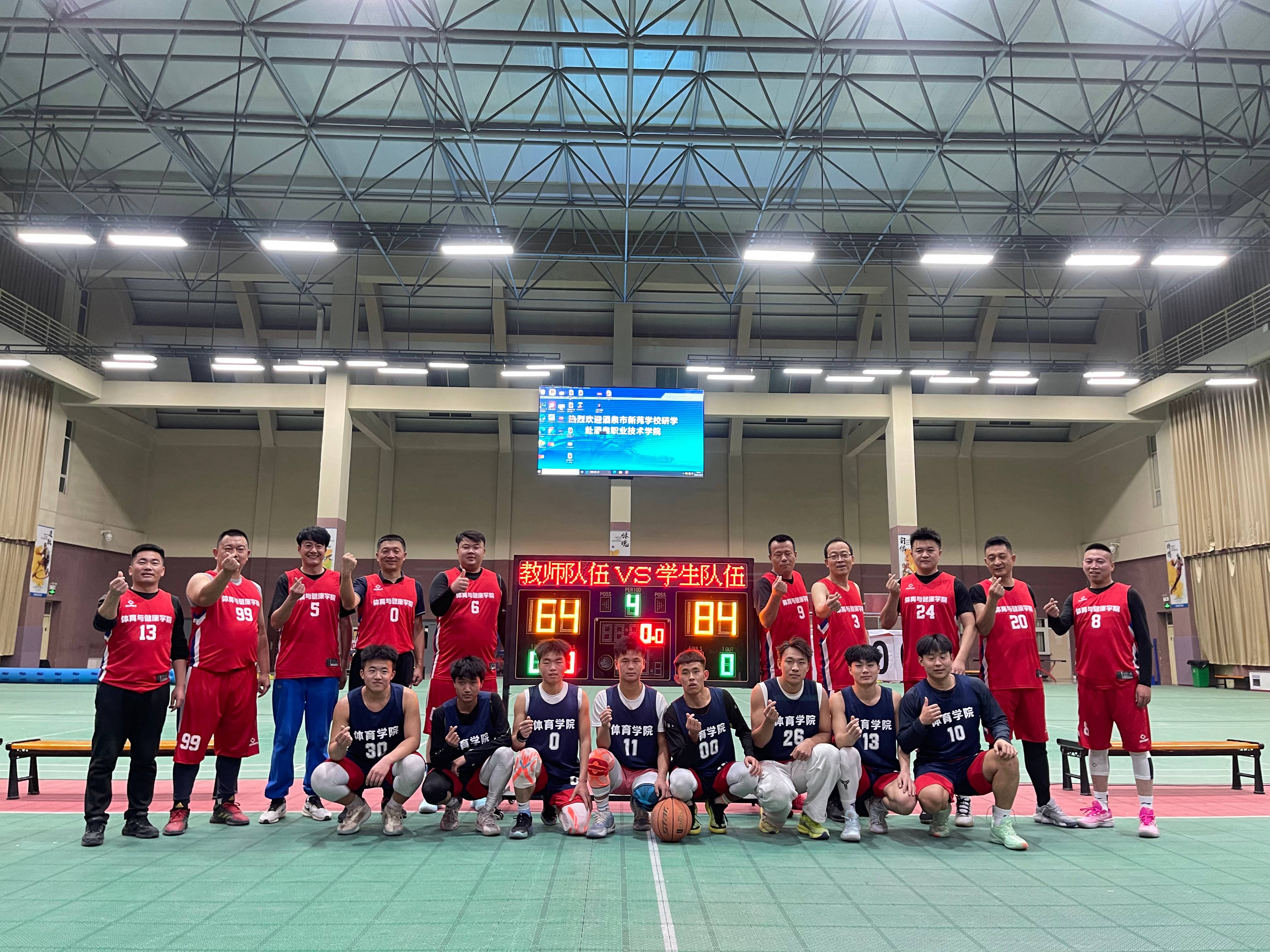 晚会前夕,进行了师生篮球联谊赛,赛场上,老师们与同学们同场竞技,共同挥洒汗水,享受篮球带来的快乐。