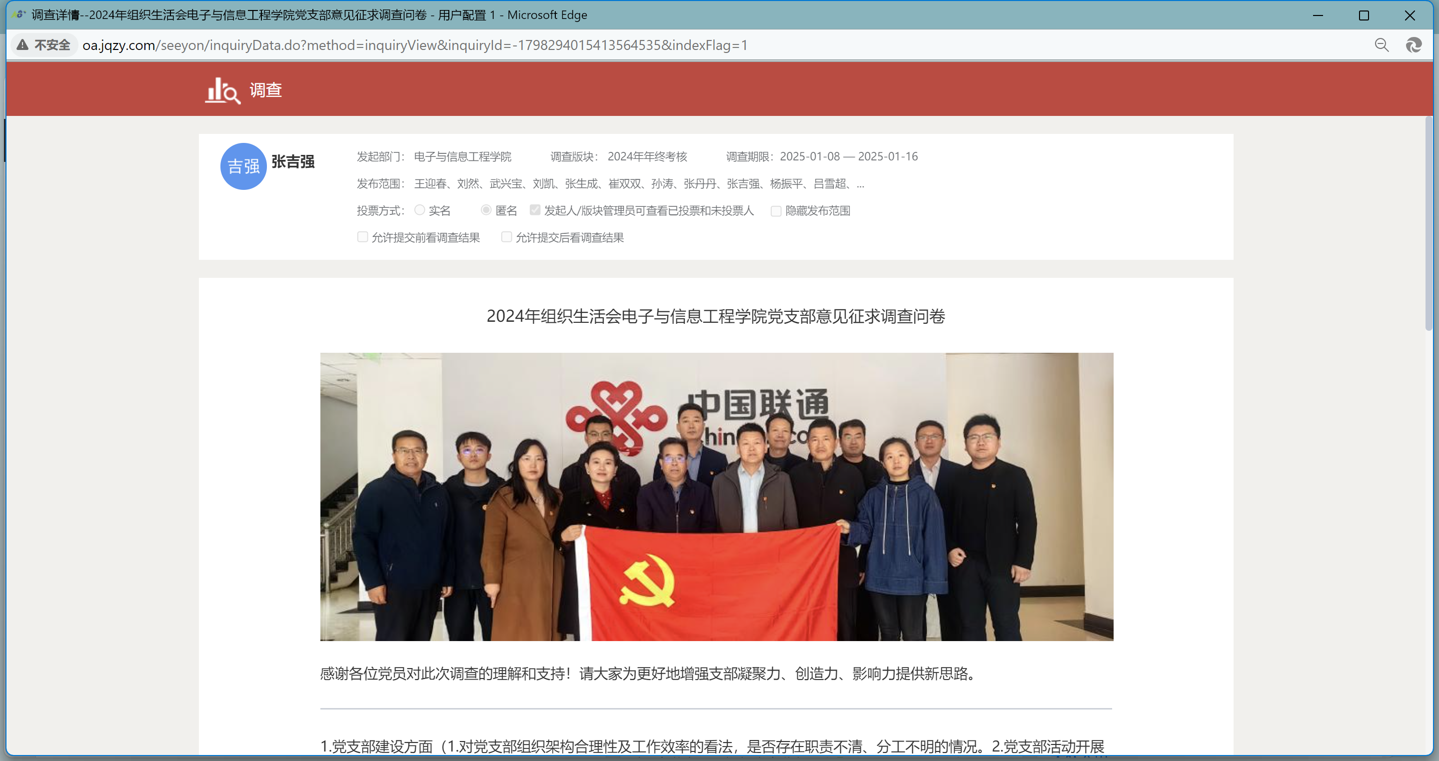 会前,党支部做了充分准备。一是组织召开支委会研究讨论、审定通过《电子与信息工程学院党支部2024年度组织生活会和民主评议党员会议方案》。二是1月8日,组织支部全体党员进行了会前集中专题学习,支部书记讲授《做学纪、知纪、明纪、守纪的模范》主题教育专题党课。三是安排部署支部意见建议征求、谈心谈话工作开展以及对照检查材料撰写等会前准备工作。