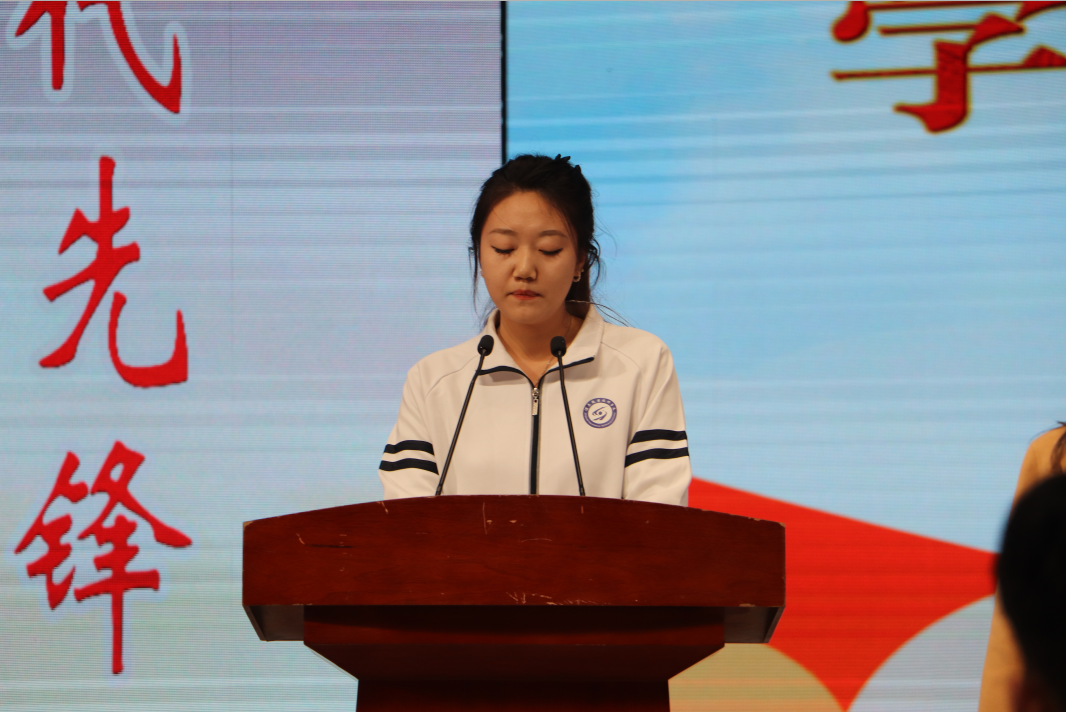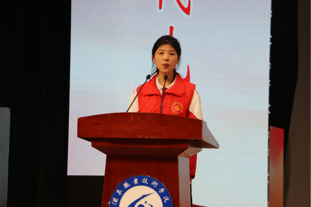 校学生会向全校师生发起“雷锋精神代代传承 融青春志愿行”3·5学雷锋志愿服务倡议;学校胡杨志愿者协会志愿者代表在仪式上发言。