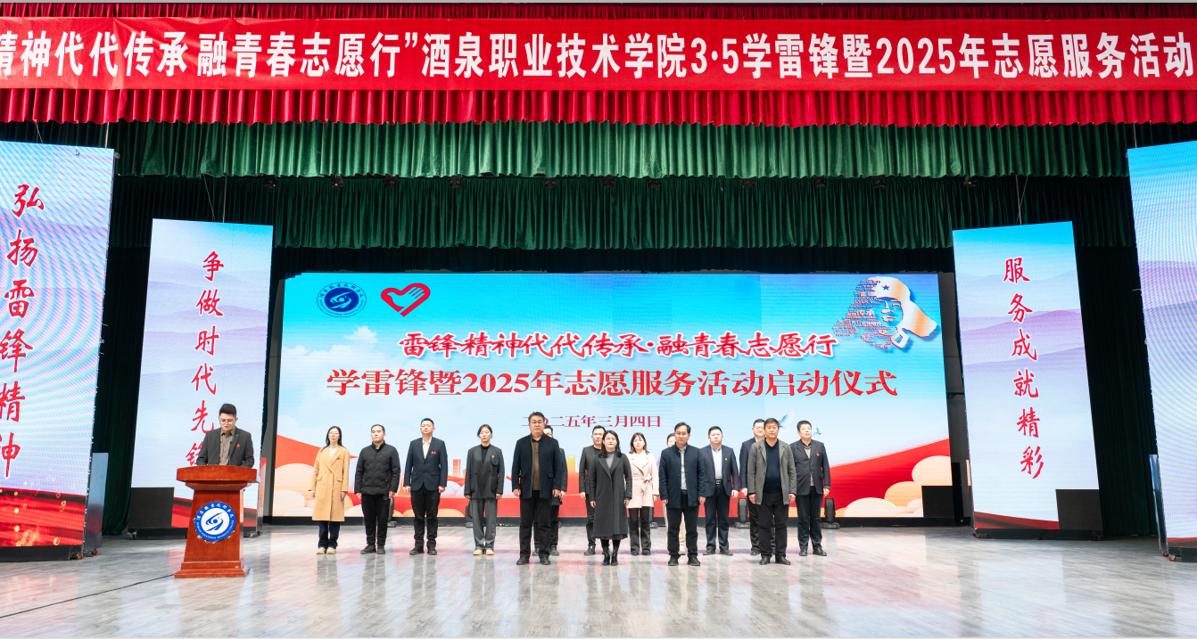 为深入学习宣传贯彻党的二十大和二十届二中、三中全会精神和习近平总书记关于弘扬雷锋精神的重要论述,贯彻落实中央社会工作会议精神,弘扬青年志愿者永久奋斗精神,焕发青年志愿者时代风采。3月4日下午,学校“雷锋精神代代承 融青春志愿行”3·5学雷锋暨2025年志愿服务活动启动仪式隆重举行。酒泉团市委副书记、市青联主席李亚敏、学校党委委员、副校长施荣出席活动,学工部、后勤管理处、团委负责人,各二级学院分管学生工作副院长、团委书记、辅导员及志愿者代表参加启动仪式。