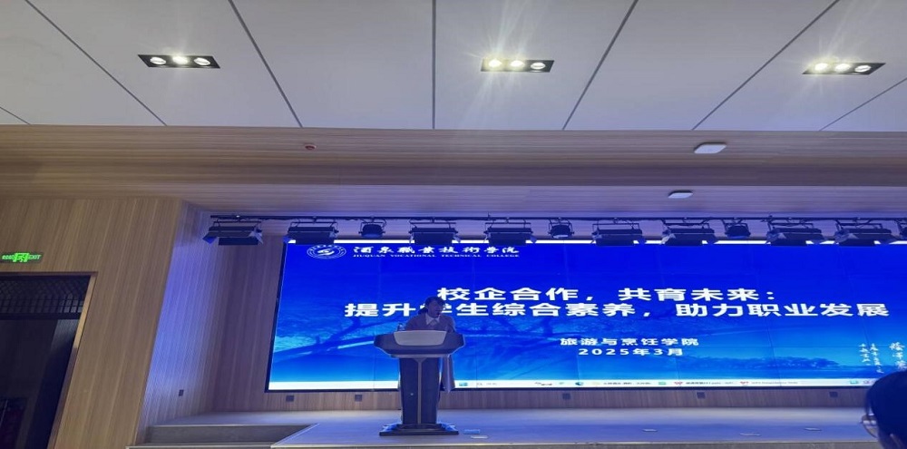 为拓宽学生视野,促进学生的全面发展和职业素养的提升,进一步加强校企合作,深化产教融合,助推酒店管理与数字化运营专业的高质量发展,依据2023级酒店管理与数字化运营专业人才培养方案,2025年3月16日旅游与烹饪学院特邀东驿敦煌酒店的总经理王欢、前厅经理赵江帆、人力资源经理杨莉来校,为2023、2024级酒店管理与数字化运营专业学生带来了一场校企合作,共育未来:提升学生综合素养,助力职业发展为主题的精彩课程。