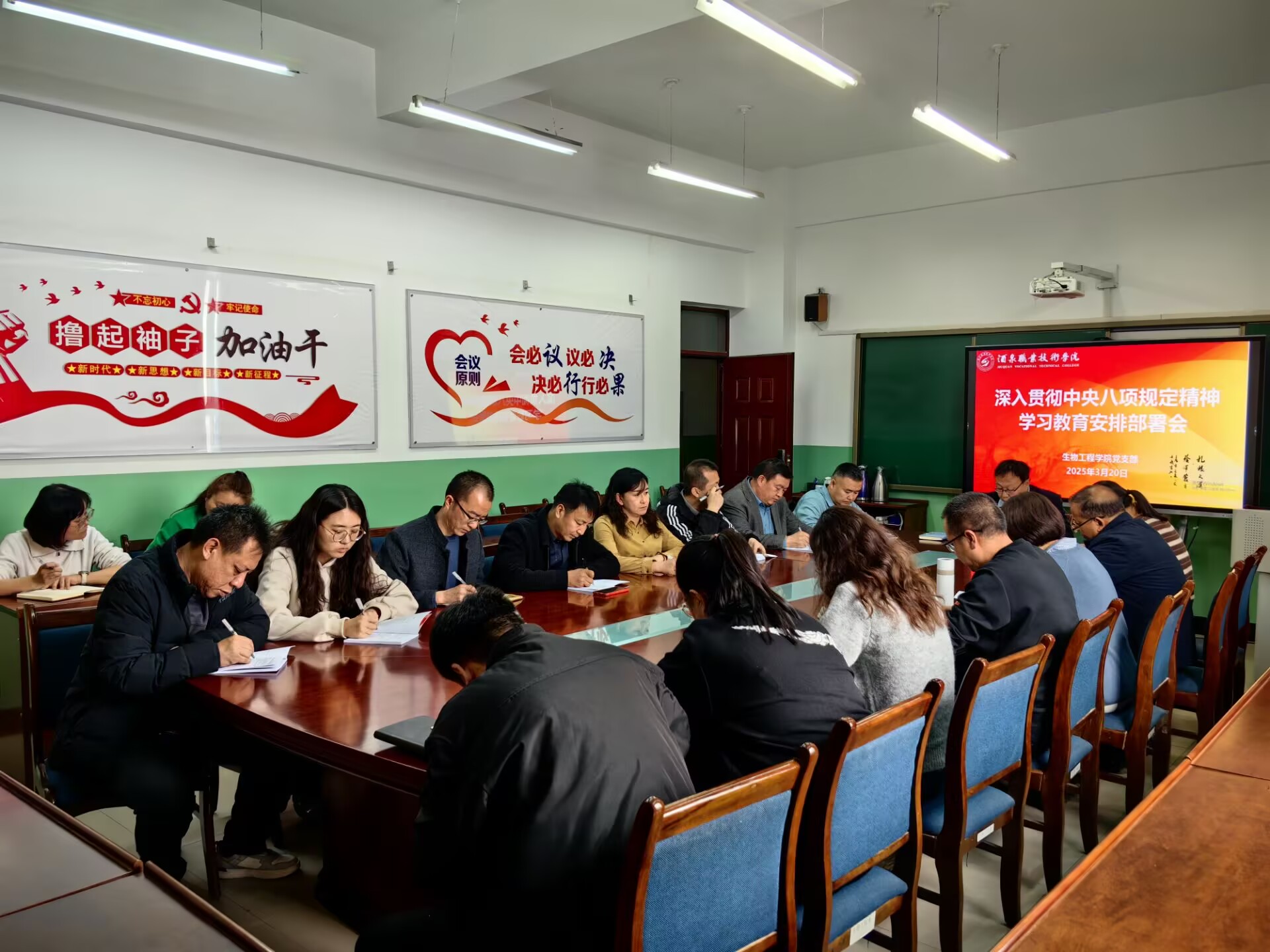 2025年3月20日下午,生物工程学院党支部深入学习贯彻习近平总书记关于党的建设的重要思想和关于加强党的作风建设的重要论述,安排部署开展深入贯彻中央八项规定精神学习教育工作。会议由生物工程学院党支部书记、院长张涛主持,学院全体党员参加会议。