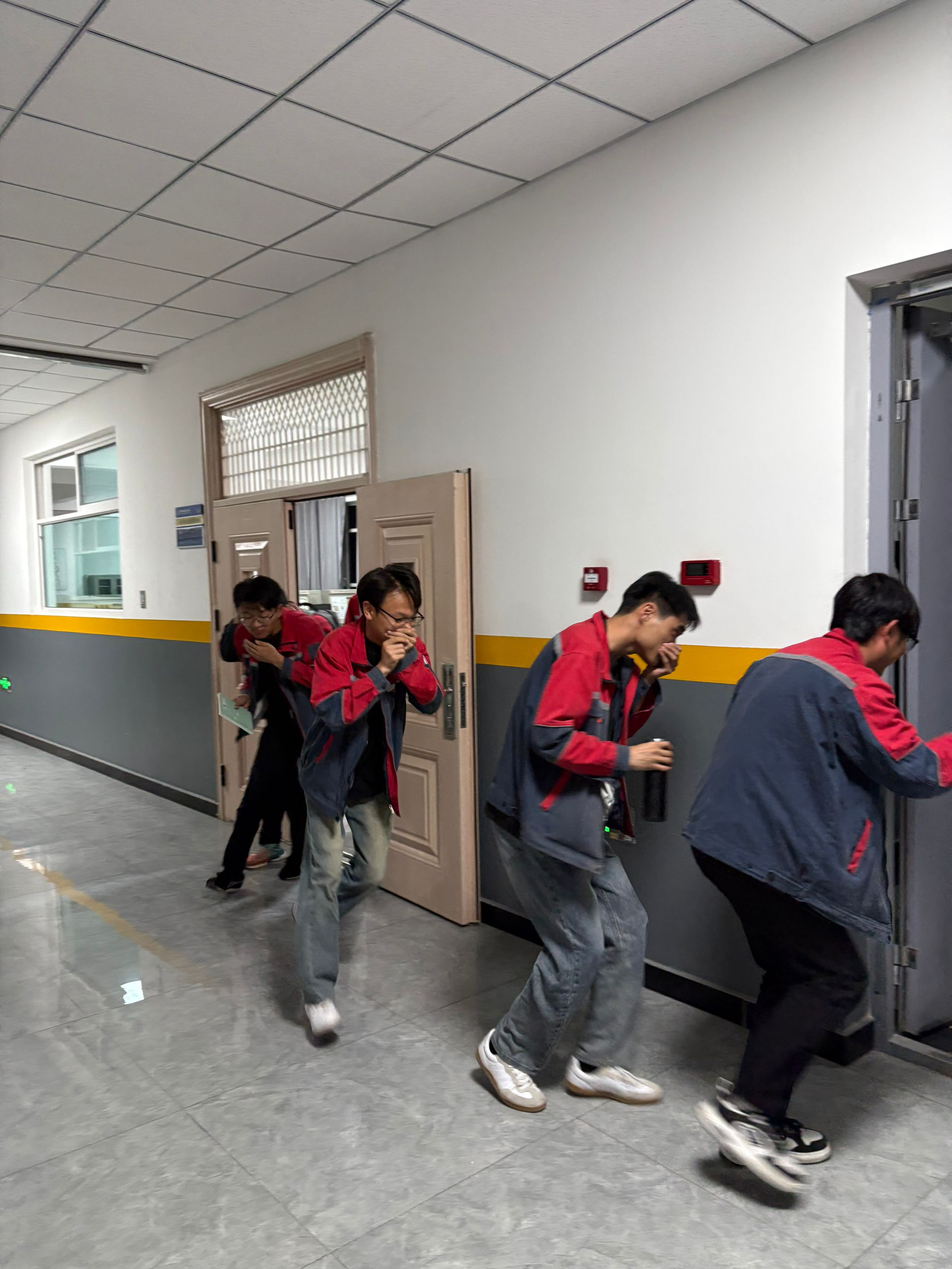 21时30分,格物楼消防警报响起,参演师生迅速进入应急状态,在安全员“保持间距、有序撤离”的指令下,规范采用低姿捂鼻方式沿预定路线撤离全员用时350从格物楼安全转移至悦健体育场集结地