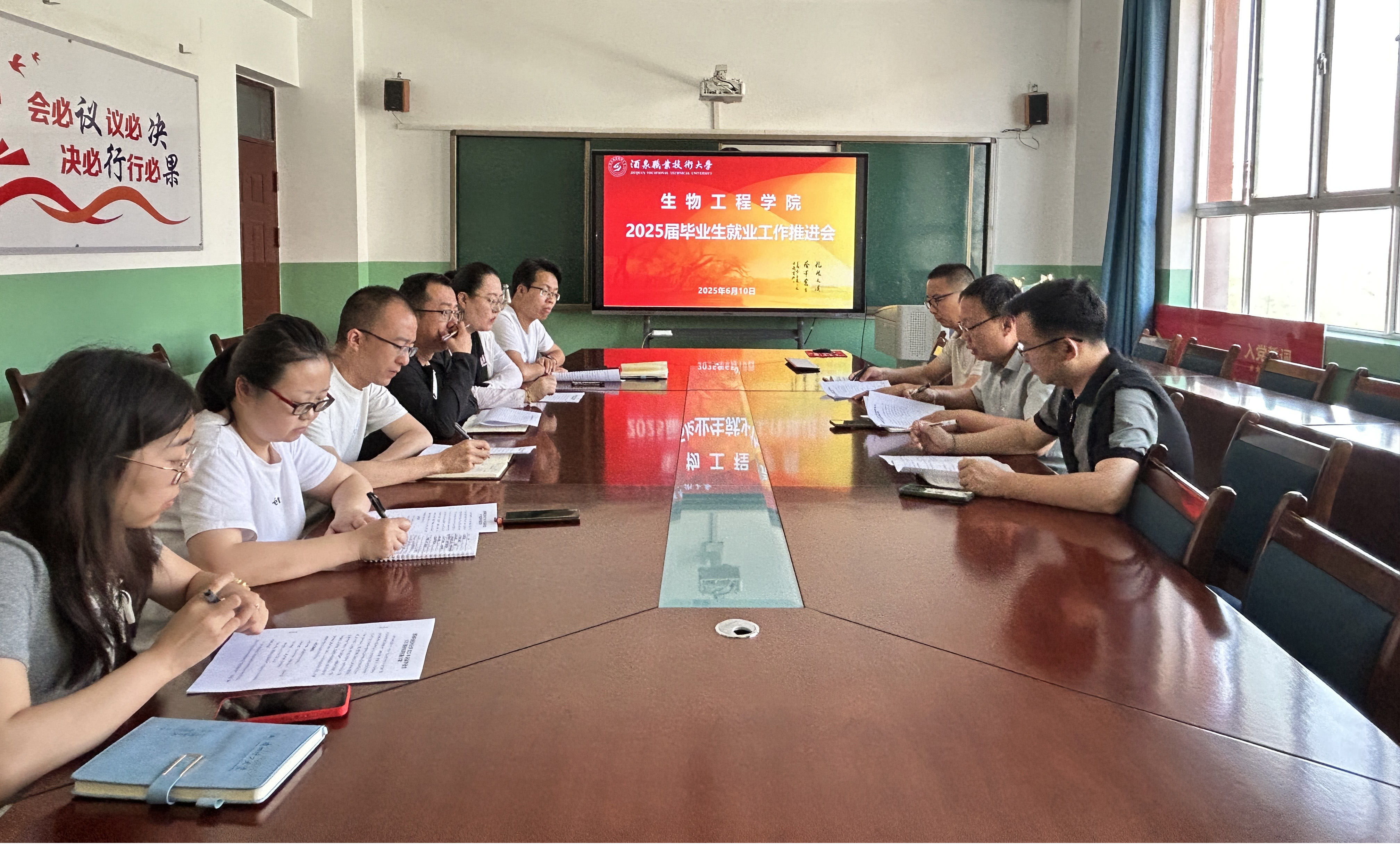 为进一步推动2025届毕业生就业工作,全面落实学校就业工作部署,生物工程学院6月10日召开毕业生就业工作推进会。学院党支部书记、院长张涛,副院长庞捷、张又元,毕业班班主任出席本次会议,共同分析就业形势,研究部署下一阶段重点工作。会议由副院长庞捷主持。