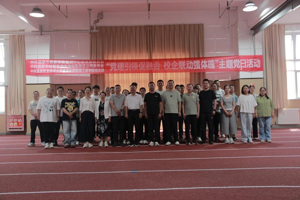 2025年6月24日,新能源工程学院党支部与酒泉市质量检验检测中心总支部委员会、酒泉市检验检测集团有限责任公司委员会,在酒泉职业技术大学天健体育馆联合开展“党建引领促融合 校企联动强体魄”主题党日活动。
