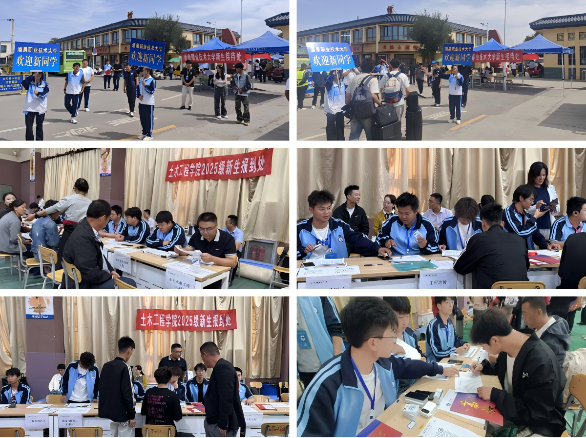 2025年9月7日至9日,酒泉职业技术大学土木工程学院2025级新生迎新工作全面展开。学院高度重视、统筹安排,于火车站、校门口、体育馆及学生公寓四大区域设置迎新接待点,师生志愿者以热情耐心的服务,高效完成近600名新生的身份核验、信息录入与宿舍分配等工作,为新生及家长提供便捷温馨的一站式入学报到体验,充分展现了学院组织有序的管理效能和师生团结协作的良好风貌。
