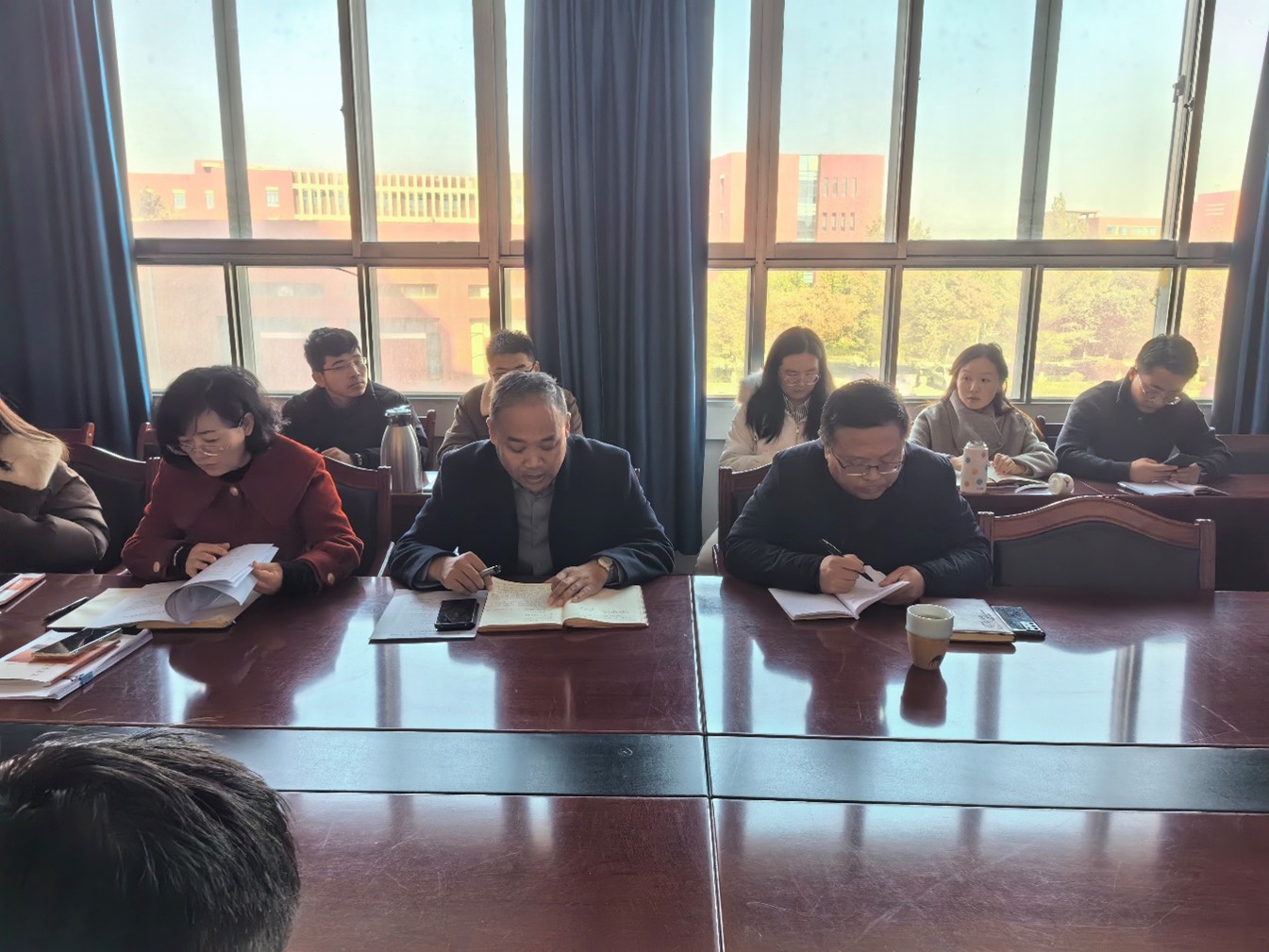座谈会围绕“警示教育”“师德师风专题学习”“传承分享”“自由发言与交流”等四个议题展开。任小娜同志领学了《酒泉职业技术大学教师职业行为细则(试行)》等师德师风建设六项制度的核心内容。6名老中青教师代表先后发言:老教师分享了从教数十载的工作经验和见证学校变迁的深刻感悟,诠释了“师道”传承的意义;中年骨干教师分享了个人成长与学校发展同频共振的认识,对教学科研、团队建设提出思考与建议;青年教师分享了入职以来的感受、面临的挑战与机遇,表达了对未来的憧憬与规划。随后,参会教师围绕学院教学、管理、服务师生、师德师风建设及个人职业发展中遇到的困惑或需求自由交流发言。