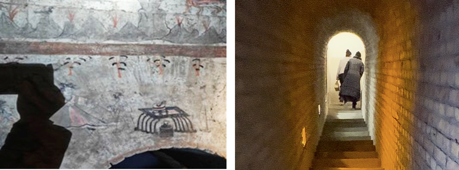 教师团队首站走进全国重点文物保护单位——丁家闸5号墓,开启跨越千年的文化溯源与教研采风之旅。在文物保护专家讲解下,教师们细致观摩墓室壁画中的农耕、狩猎、宴饮场景,深入解读线条韵律、色彩语言与纹样寓意。通过梳理魏晋时期河西走廊民俗风情与审美取向,团队既积累了一手文化素材,更探索出将传统艺术转化为“文艺赋美乡村”实践动能的教学思路。