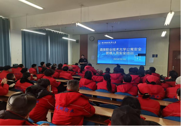 下午,学生公寓安全管理人员专项培训同步举行,天地物业全体安全管理人员参训,培训聚焦公寓日常安全管理实务,围绕消防设施操作、用电安全检查、夜间巡查规范、留校学生登记管理以及突发事件信息报送等内容展开系统讲解,着力提升公寓、物业人员的风险识别、隐患排除和先期处置能力。重点明确了消防安全、校舍安全及留校学生服务管理等具体工作要求。会议要求全体公寓管理人员严格执行值班制度,树立“安全为先,预防为主”理念,认真履行岗位安全管理责任,严格落实值班巡查制度,细致做好寒假留校学生的服务与管理工作,确保学生生活区域安全有序。