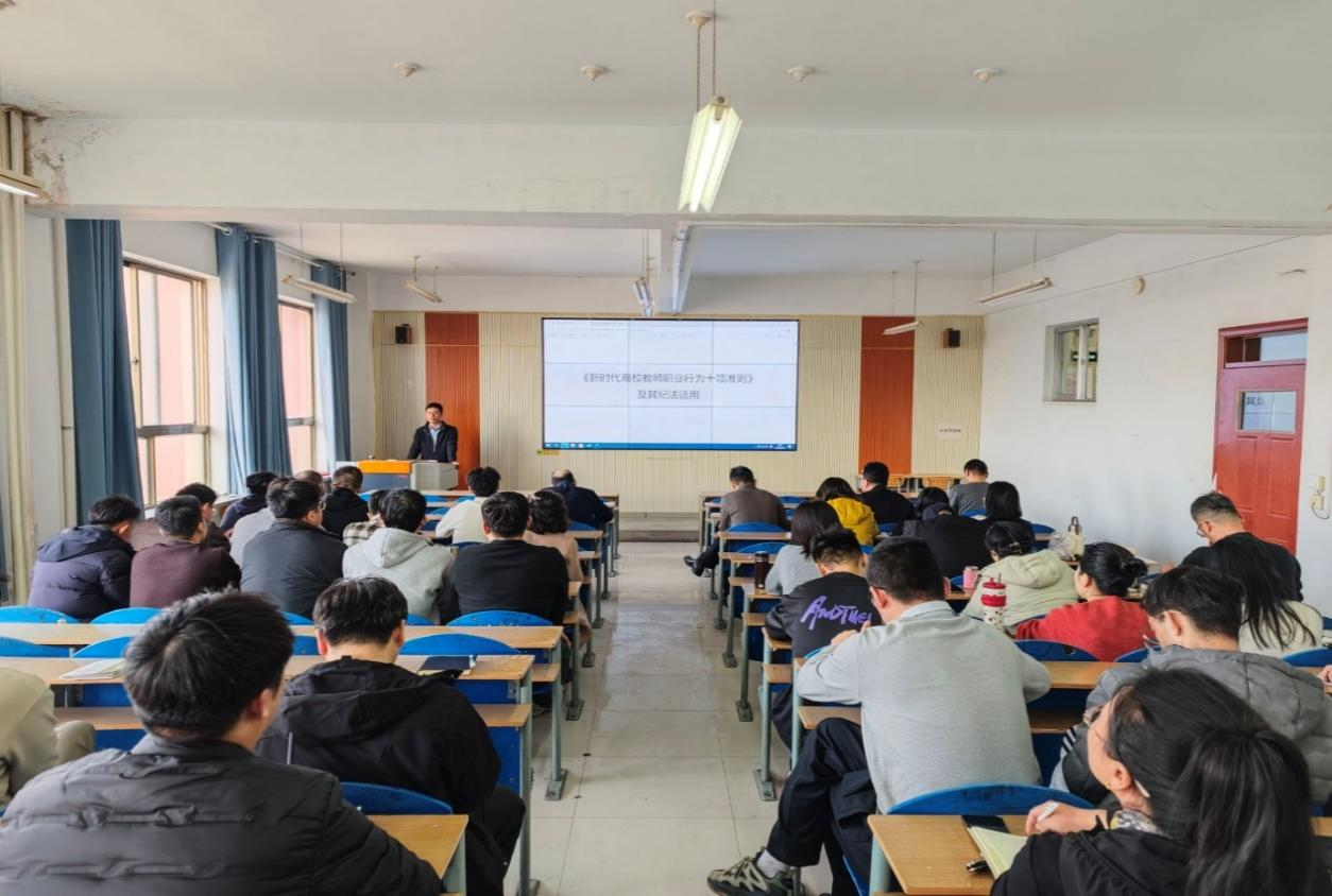 2月25日,学院副书记程小兵作师德师风专题教育报告。他以弘扬教育家精神为主线,带领全体教师深入学习《新时代高校教师职业行为十项准则》《酒泉职业技术大学教师职业行为细则(试行)》等六项制度,组织观看《教育家精神—启迪与实践》《百年巨匠·教育体育篇》等纪录片,并结合典型案例及其纪法适用,针对违规兼职、学术不端、师德失范等突出问题进行警示剖析,引导教师知敬畏、守底线,争做“四有”好老师,担当起学生健康成长指导者和引路人的责任。