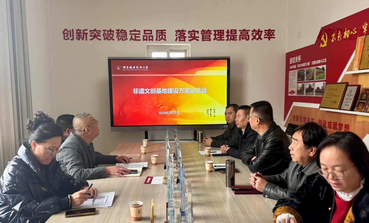 3月27日上午,非遗文创基地建设方案论证会在酒泉职业技术大学科技园307会议室举行。