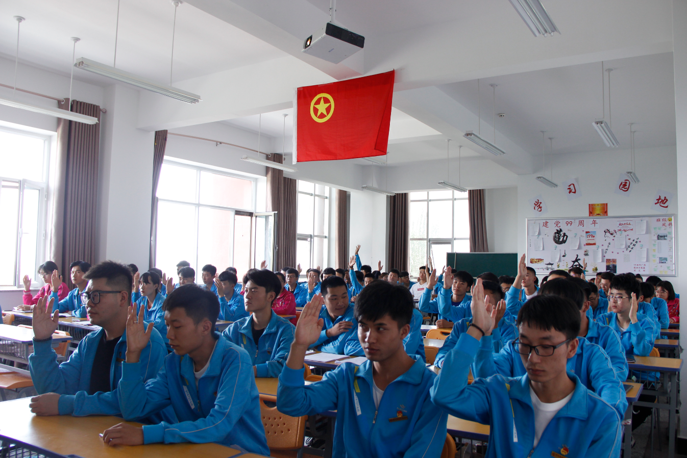 7月16日,在雄壮的国歌声中,共青团酒泉职业技术学院新能源工程学院第十届“团学两代会”第三次会议在致远楼313教室隆重召开。新能源工程学院办公室主任李亮、团总支书记高翔、学生管理办公室李玉霞及72名团学代表参加了会议。会议由团总支书记高翔同志主持。