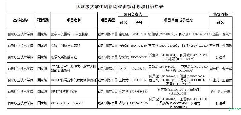 2020年9月2日,教育部高等教育司印发《关于公布2020年国家级大学生创新创业训练计划项目名单的通知》(教高司函[2020]13号),我校《医学中的国粹---中医按摩》等七个项目获批2020年国家级大学生创新创业训练计划立项,打破了我校“国创计划”零立项的历史;《APS——老年人的电子商务世界》等十三个项目获批2020年甘肃省大学生创新创业训练计划立项。
