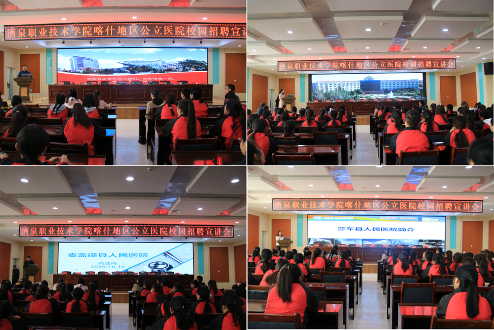 10 月10日,由喀什地区第一人民医院、伽师县人民医院、莎车县人民医院、麦盖提县人民医院等4家公立医疗组成的招聘宣讲团一行7人光临我院开展喀什地区公立医院招聘宣讲会。