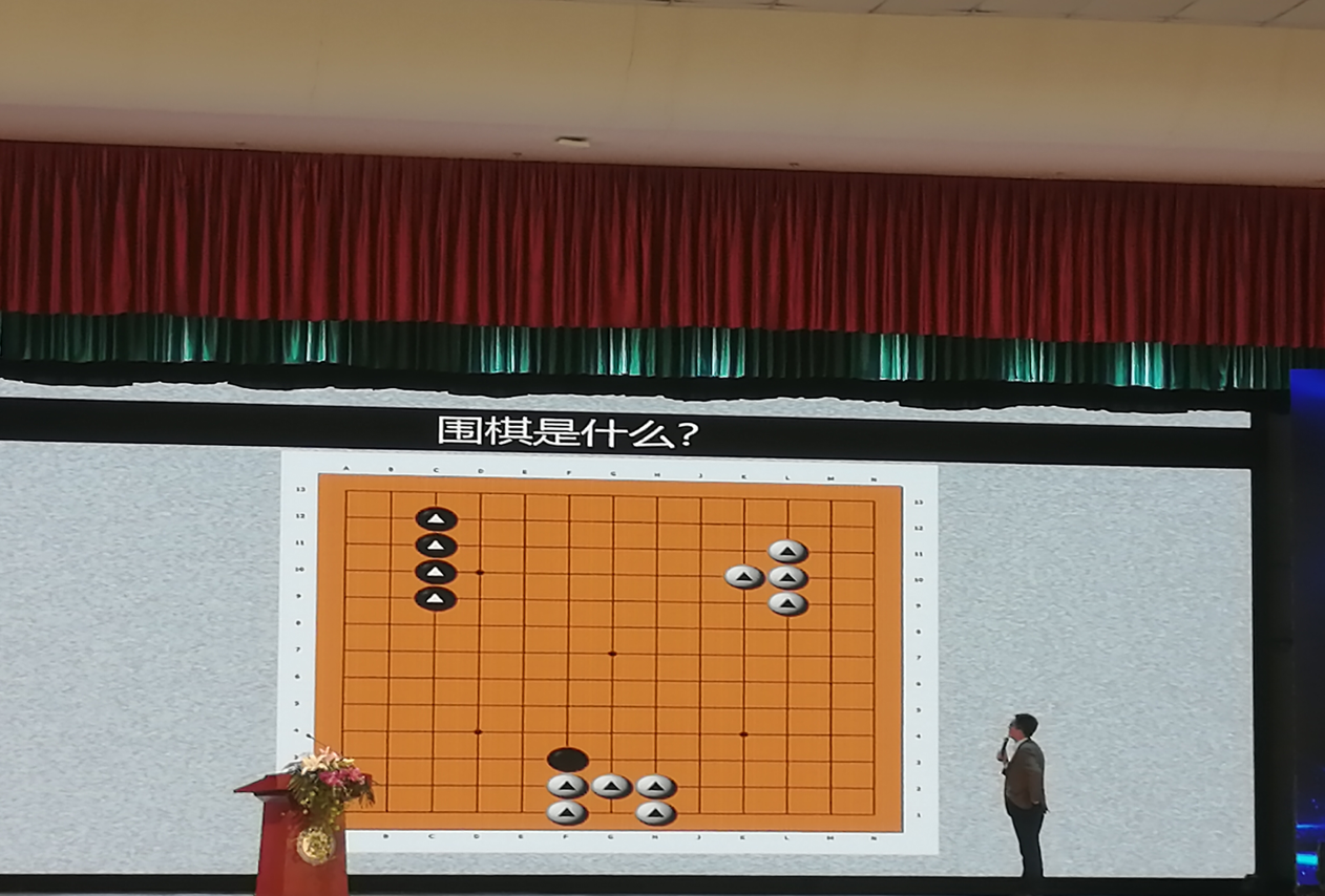 讲座中,葛玉宏校长向同学们介绍了围棋的基本知识和历史文化,边讲解边演示围棋经典的布局,横纵十九路,三百六十一个交叉点,串讲了围棋名家的故事,向同学们道出了围棋世界的哲理:围棋充实着现代人的精神生活,围棋哲理告诉我们不要刻意追求所谓的技巧,客观对待身边的事物,脚踏实地寻求最佳的方法。