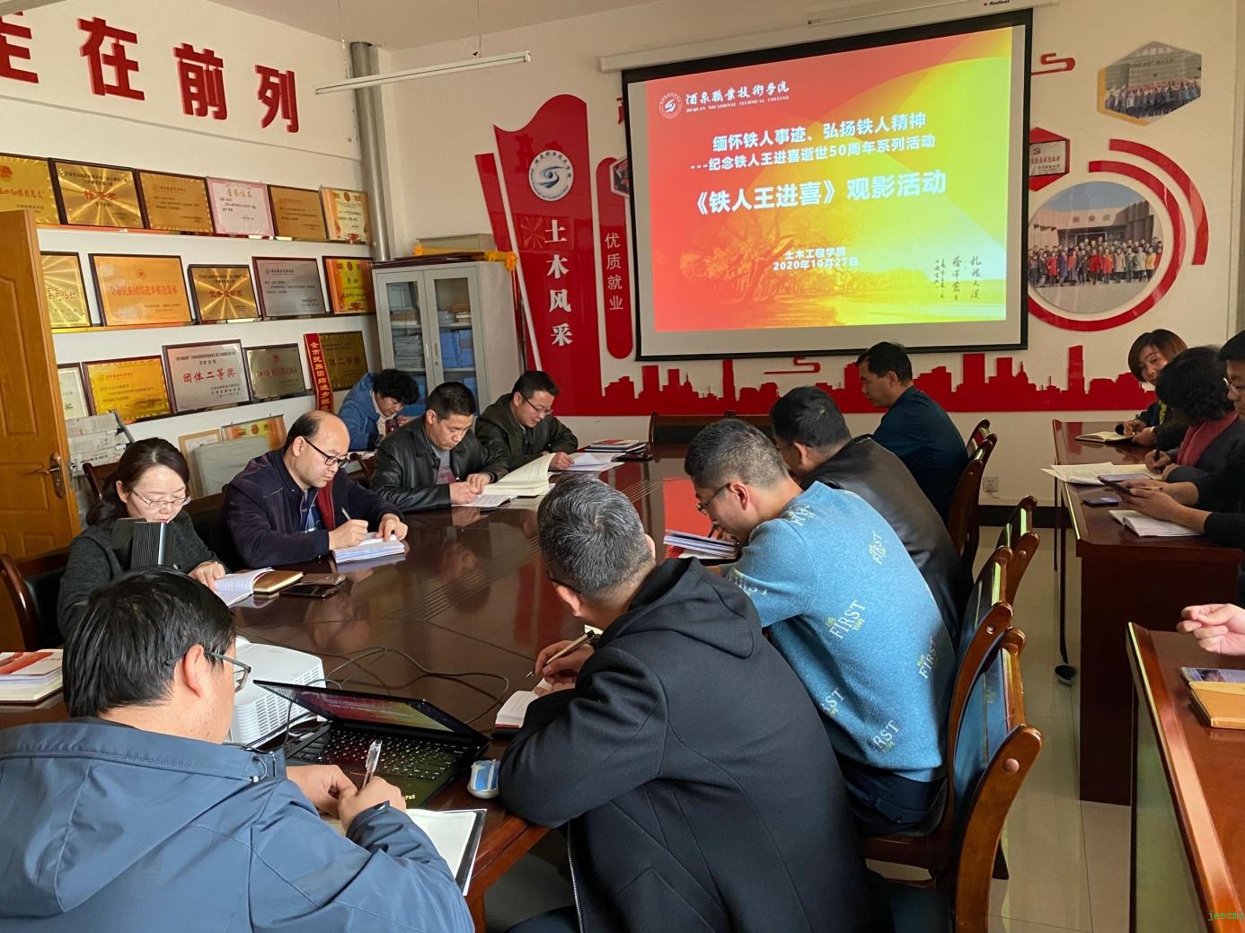 2020年11月15日是铁人王进喜逝世50周年纪念日,为弘扬铁人精神,激发广大教师干事创业的斗志,学院党支部组织策划了“忆铁人事迹,传铁人精神主题党日活动”, “弘扬铁人精神,不忘初心使命专题党课”, “缅怀铁人事迹、弘扬铁人精神观影活动”, “弘扬铁人精神,优化师德教风主题教育活动”, “品读铁人故事,学习铁人精神读书活动”, “弘扬铁人精神,做新时代的领跑者研讨交流主题活动”, “缅怀铁人事迹,践行铁人精神服务师生、排忧解难和社区志愿服务活动”, “学习铁人精神,做合格接班人团学活动” 等八项系列学习纪念活动,此次观影活动是系列活动之一,在11月25日前陆续开展其他七项活动。