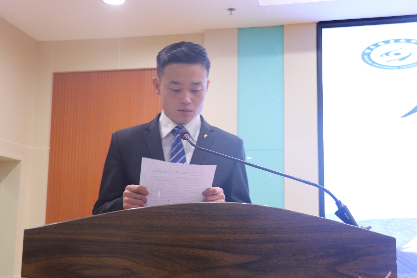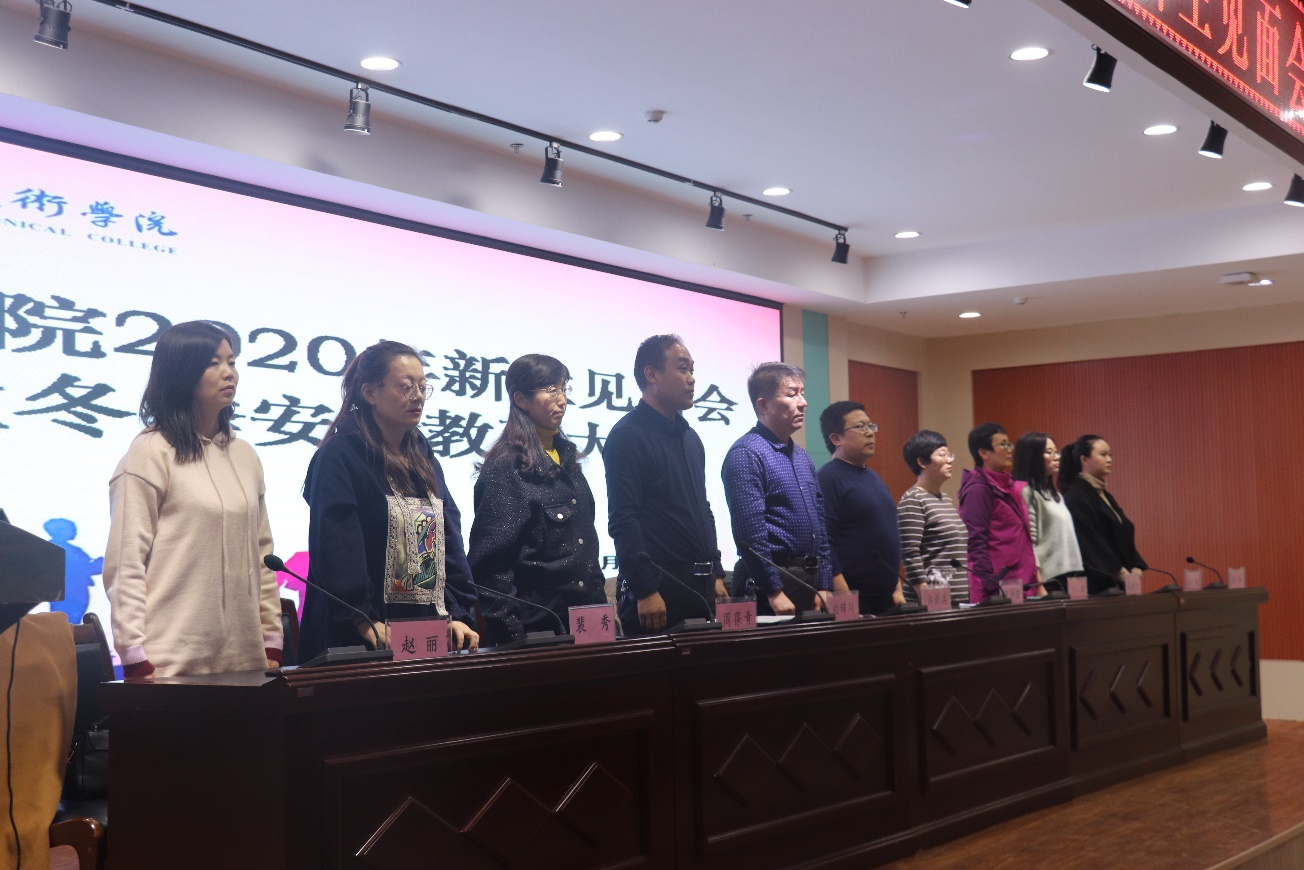 见面会在国歌声中开幕,新生代表张军、老生代表张蕊蕊、教师代表荆文婧先后发言,表达了对新生的欢迎和对新的学习生活的期望;党支部副书记孔祥波宣读了学院文件《关于聘任2020级新生班主任、辅导员的通知》,并介绍学院有关党团建设情况;副院长任小娜同志介绍有关专业设置和教育教学情况;学院党支部书记、院长许新兵从学校、学院办学历史出发,对全体新同学提出了四点建议,归纳起来就是4个关键词,即会做人、会生活、会健体、会学习。他希望广大同学认真思考,深刻体会,以实际行动尽快融入大学生活中来,努力学习、开拓进取,成为有担当有抱负有才华的酒职学子。