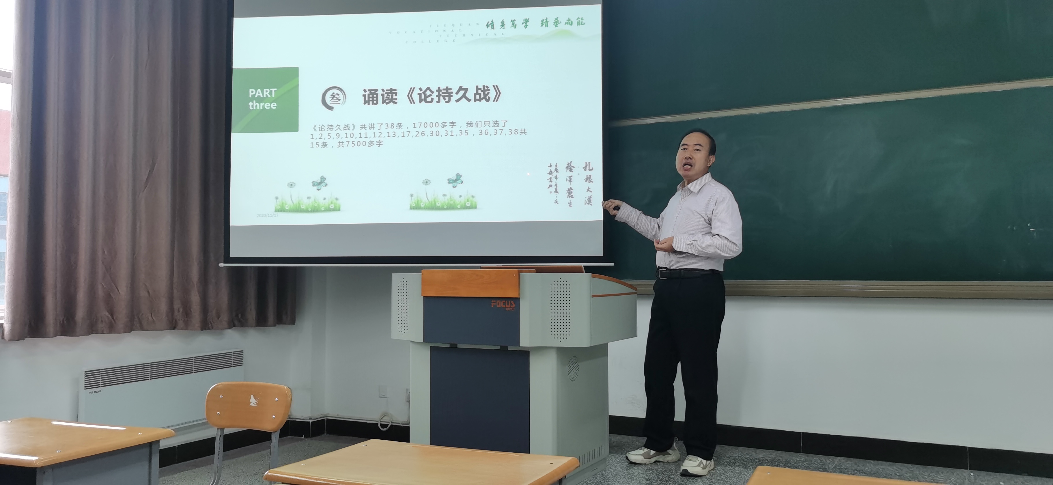 此次活动由李清环老师主持,马克思主义学院思政课教师参与。老师们深情地诵读了《前十年为后十年做准备》、《在马克思墓前的讲话》、《我们对香港问题的基本立场》、《论持久战》、《遥远的救世主》以及毛泽东的诗词《卜算子·咏梅》等经典著作,其中王永顺老师用英文、裴雯老师用中文双语诵读了《共产党宣言》。在此次诵读活动中,老师们还对经典篇目的写作背景和意义进行了介绍,对经典篇目阅读后的心得进行了分享。