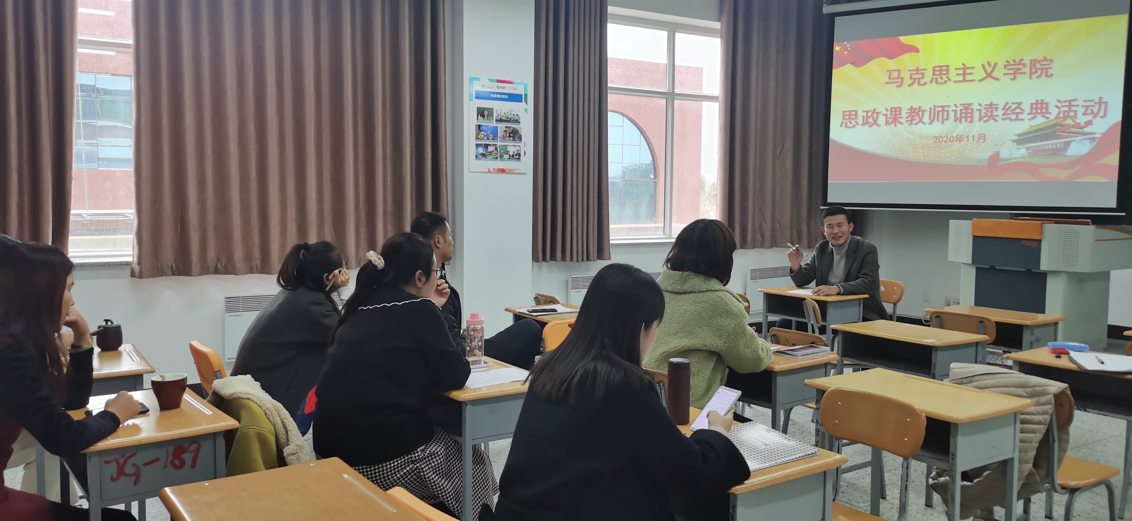 与经典同行,与圣贤为友。为增强思政课教师的理论深度和厚度,拓展思政课教学模式、丰富教学内容。11月17日下午3点,马克思主义学院在致远楼208举行了思政课教师诵读经典活动。