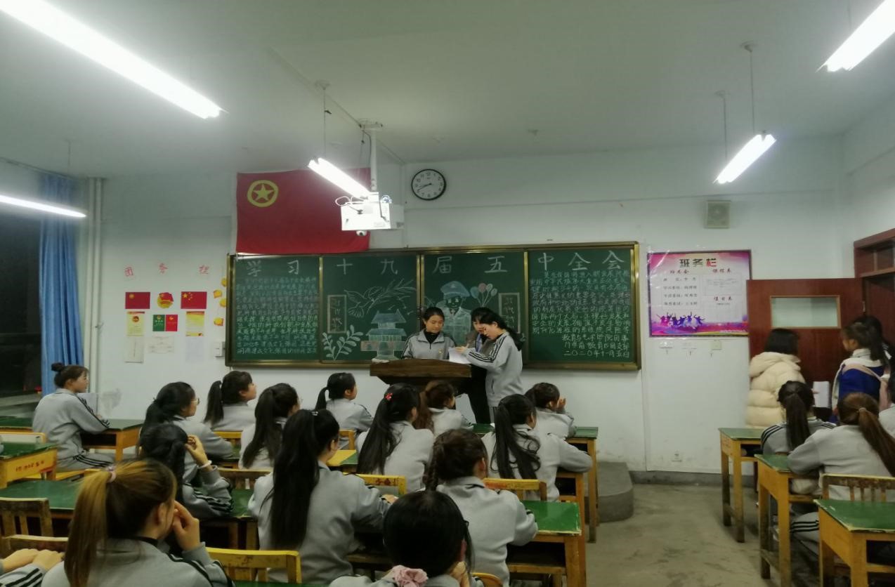 党的十九届五中全会是在即将实现第一个百年奋斗目标、开启全面建设社会主义现代化国家新征程的关键时刻召开的一次十分重要的会议。活动中,各班团支书主持,通过播放音频、视屏等形式学习会议精神,响应会议号召:“中国青年要大力弘扬爱国守法,团结友爱勤俭自强精神,我们要以党和国家事业的远大目标凝聚青年力量,以中华民族伟大复兴的历史责任引领青年奋进,把服务青年寓于服务大局之中,认真谋划新时代共青团工作新篇章”。
