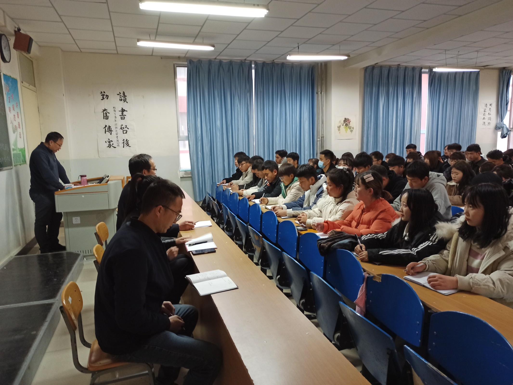 开班仪式结束后,张涛副院长以“以育人为核心,以德育为先导”为主题,从学生思想教育、日常管理、科技创新、社会实践与志愿者服务、校园文化、就业等方面进行了开班第一讲。