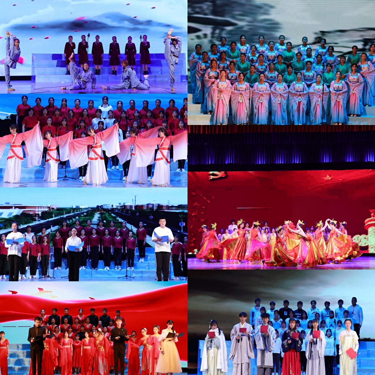 比赛中同学们个个精神饱满、情绪激昂,带着对经典诗文的热爱,用美妙的语言述说心声,歌颂中国人民用勤劳和智慧创造的震惊世界的奇迹,呼唤新时代有志青年为实现中华民族的伟大复兴,她们意气风发,豪迈自信,一首首激昂的诗歌,一次次精彩的表演,一声声富有激情的朗诵,字正腔圆,铿锵有力,伴着婉转的旋律,声情并茂地朗诵《读中国》、《初心》、《河西走廊的月亮》等经典诗词,2020级表演艺术班用自己的原创作品《我们是年轻的胡杨》夺得本次朗诵比赛的一等奖。他们用慷慨激昂、精神饱满的朗诵,倾诉着对祖国母亲、对中国共产党的感激和热爱之情,出色的表现赢得了在场观众及评委老师的热烈掌声。