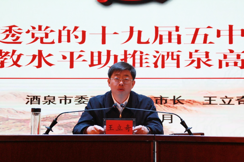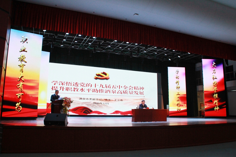 12月16日,酒泉市委副书记、市长王立奇来我校作党的十九届五中全会精神宣讲报告会。市政府副秘书长、办公室主任朱建军等出席了报告会。学校党委书记、校长易志军主持宣讲报告会。