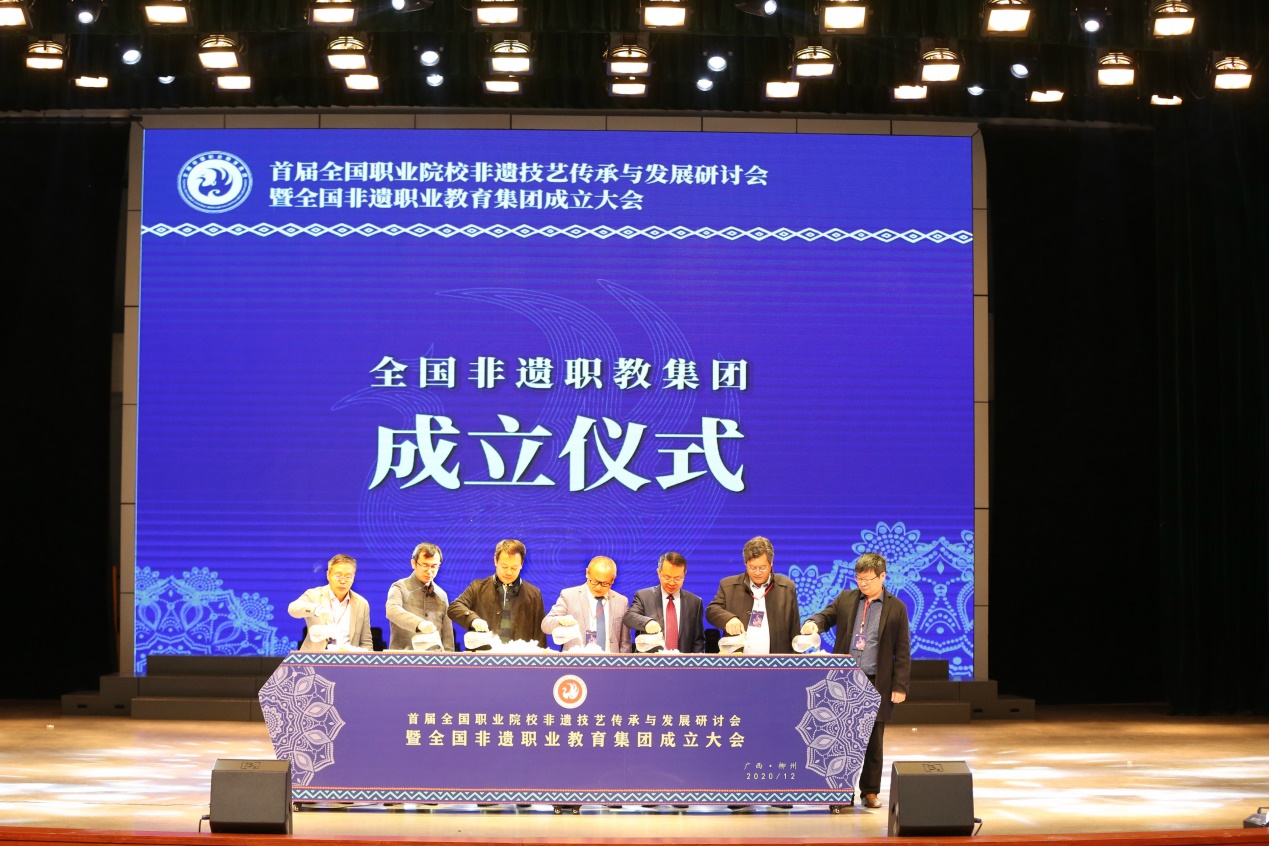 12月14日,由广东省职业教育研究院和我校等7家院校单位,牵头发起的首届全国职业院校非遗技艺传承与发展研讨会暨全国非遗职业教育集团成立大会在柳州召开。来自全国110余所院校参会嘉宾及柳州市第二职业技术学校师生代表450余人,共同探究职业院校非遗技艺传承与发展之路,党委委员、副校长薛仰全教授和创新创业学院副院长倪兴军代表学校参加。