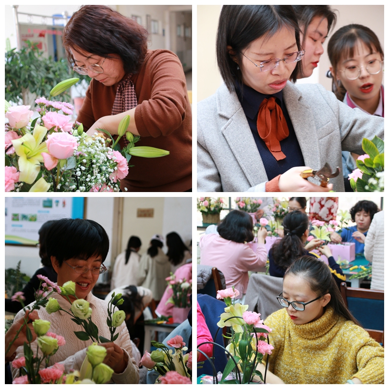 为丰富教职工的精神文化生活,提升教职工艺术修养和生活品味,促进女性身心健康,展现女性热爱生活和积极向上的精神风貌,3月8日,值此第111个“三八” 国际劳动妇女节之际,学校举办“幸福像花儿一样”花艺沙龙。学校60余名女教师参加了活动。