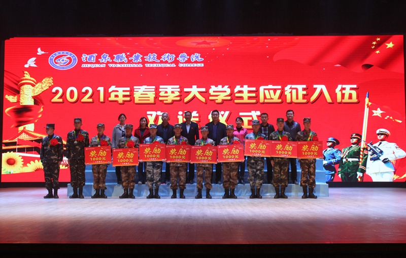 欢送仪式在雄壮的国歌声中拉开帷幕,参会领导为入伍学生代表发放了纪念品和奖励金。