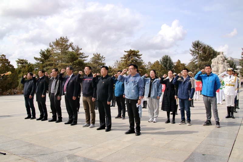 凛然英雄气,激荡天地间。烈士纪念馆前鲜花簇拥,庄严肃穆。悼念活动在庄严的国歌中拉开序幕,胡杨国旗护卫队向革命先烈敬献花篮,全体师生鞠躬默哀,寄托对革命先烈的无限哀思。随后,团委庞捷老师带领全体团员重温了入团誓词。