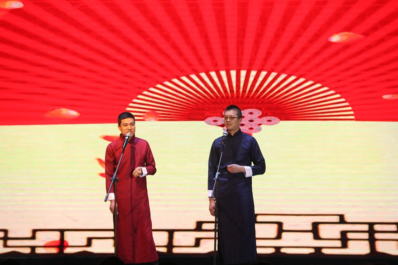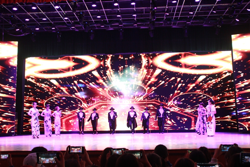 晚会现场座无虚席,载歌载舞,歌声飞扬,掌声雷动。应急安稳员、公寓管理员、保洁员、学生餐厅从业人员等学校一线劳动者登上舞台,秦腔、舞蹈、走秀精彩纷呈,小品、相声、快板雅俗共赏。相声《讲究的用餐人》、快板《舞动酒职》、秦腔《急子回国》等节目从一线人员视角,诠释了劳动者对爱党爱国、爱校爱家的深切理解,展示了酒职人尊重劳动、热爱劳动的道德品质,既是一场热情洋溢的文艺晚会表演,更是一次身临其境的课程思政教育。