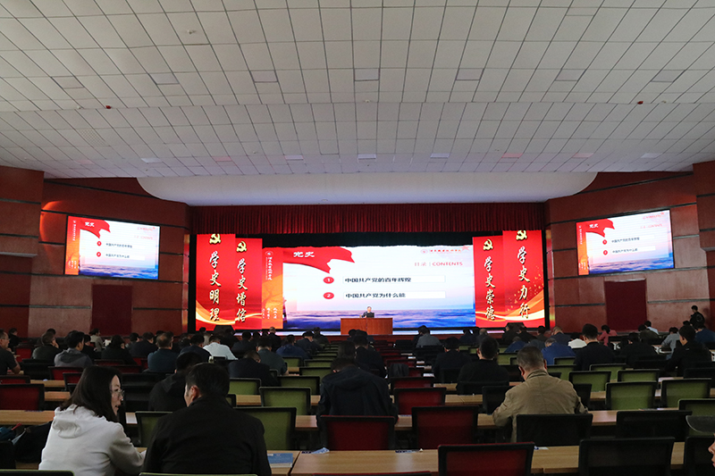 易志军教授以《中国共产党为什么能?——学习中国共产党百年辉煌史》为主题,阐述了学习党史的现实意义,梳理了党史发展的三个阶段,回顾了中国共产党的百年辉煌历程,以鲜活的事例阐释了“中国共产党为什么能”这一命题,彰显了共产党人信仰至上、慨然担当、舍身为民、矢志兴邦的伟大精神,诠释了党史的深刻内涵。