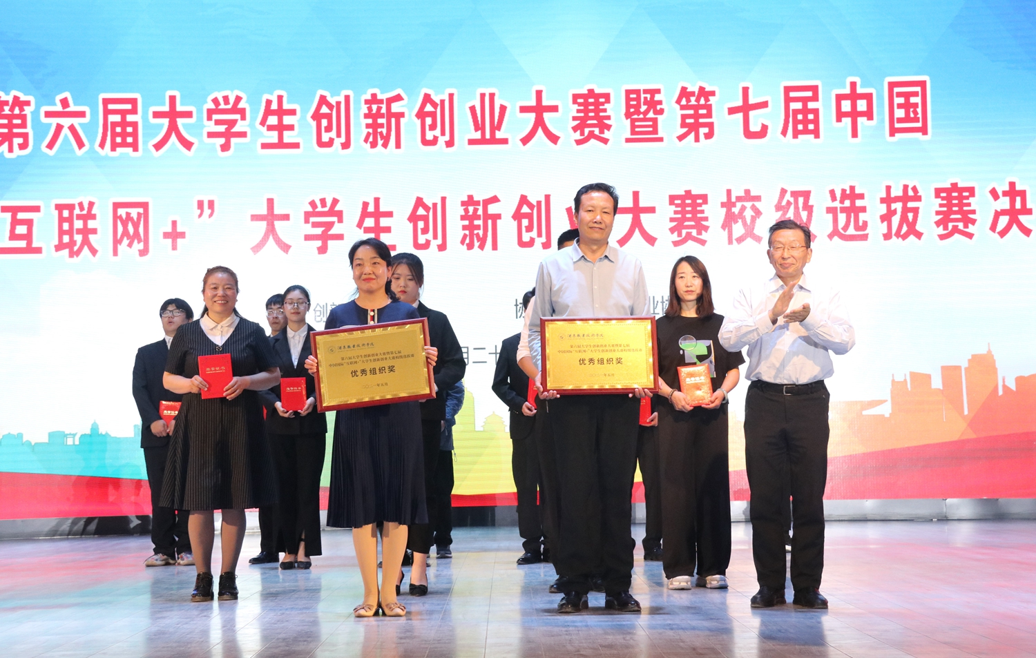 党委书记、校长易志军为获奖选手、优秀组织单位颁奖