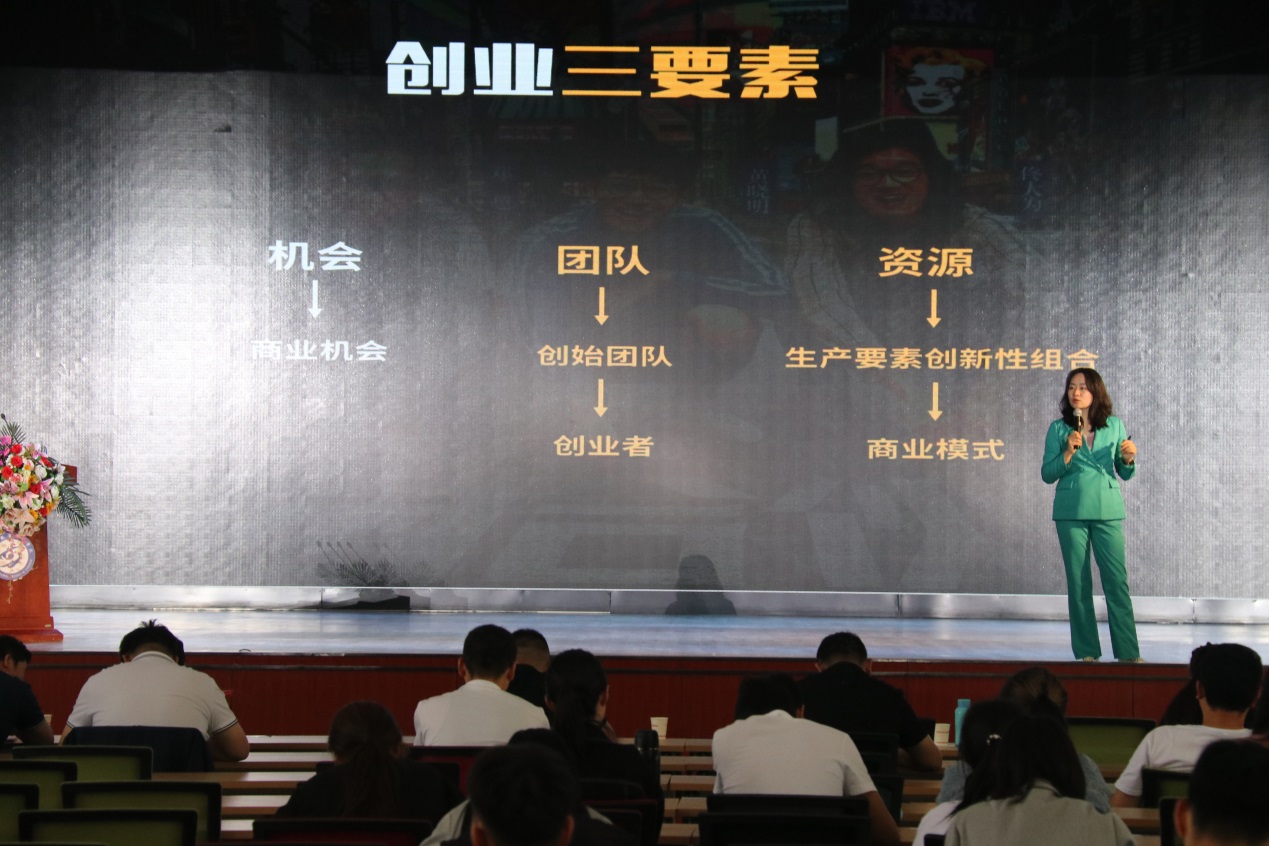晁媛媛展开了以“看懂项目底层的商业模式”为题的创业知识分享,主要从创业的概念、创业关键词、创业三要素、创业者素质、商业模式的一般要素进行讲解。她重点强调创业者的应该具备责事业心、风险意识、情绪稳定、自信、诚信的特征和技术、管理等知识以及团队合作、战略规划、人际沟通等能力。在分享的最后,她推荐了一些与创业有关的影单,以期在创业中给大学生提供新思路。