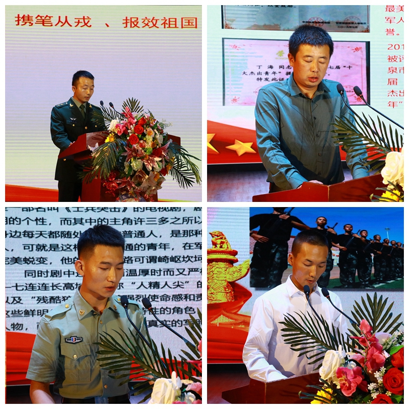 原武警甘肃总队兰州支队战士、现酒泉市肃州区银达镇怀中村党支部书记、村委会主任丁海分享了从军和创业经历;西部战区某合成旅排长张凯文、退役返校学生代表王振宇以及机电工程学院2019 级志愿入伍大学生代表闫乐中分别从不同层面对自己携笔从戎,投身军营,保家卫国过程中的点点滴滴经历、感受、收获进行了精彩宣讲。