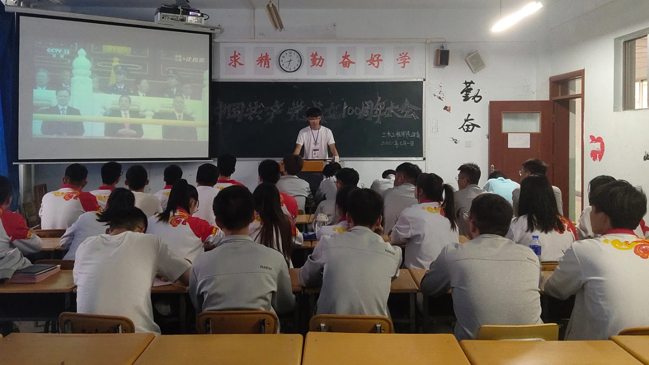 习近平总书记的讲话总揽全局、内涵丰富、意味深远、催人奋进,充分反映了党的成熟与自信,是一篇闪耀着马克思主义光辉的纲领性文件。广大师生欢欣鼓舞、感慨万千,共祝伟大光荣正确的中国共产党生日快乐!祝愿伟大祖国繁荣昌盛!大家一致表示,要更加紧密团结在以习近平同志为核心的党中央周围,积极响应习近平总书记对全体党员的伟大号召,团结一心,锐意进取,不忘初心,牢记使命,在向第二个百年奋斗目标迈进的新长征路上做出新的更大贡献!