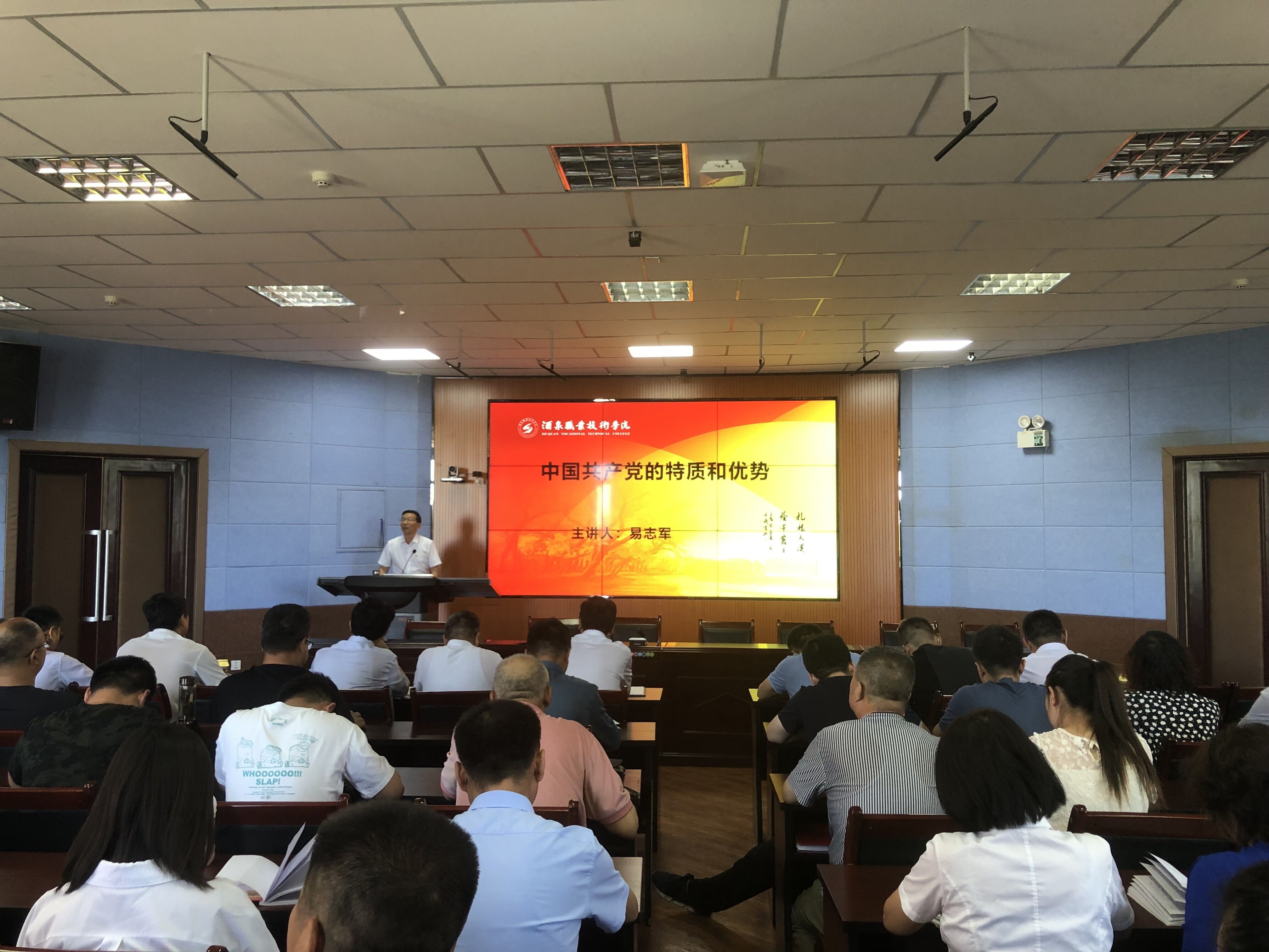 为深入学习贯彻习近平新时代中国特色社会主义思想和习近平总书记在庆祝中国共产党成立100周年大会上的讲话精神,深入推进党史学习教育, 7月6日,学校党委书记、校长易志军教授为机关党总支全体党员及教职员工讲“中国共产党的特质和优势”专题党课。