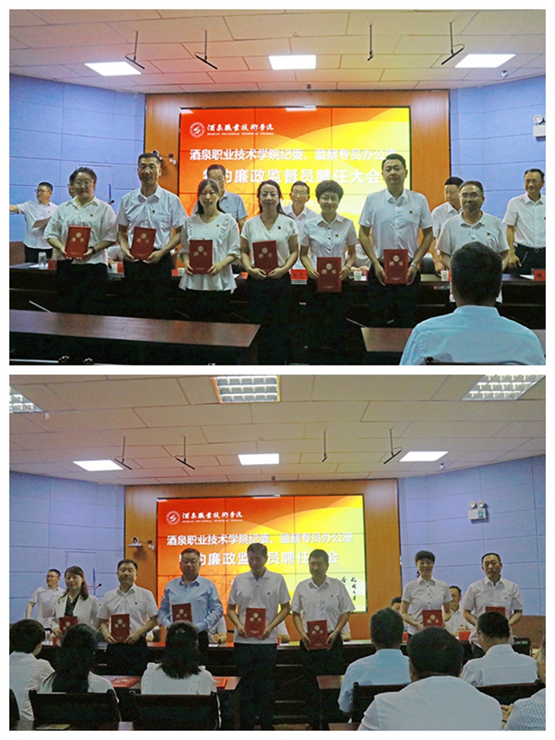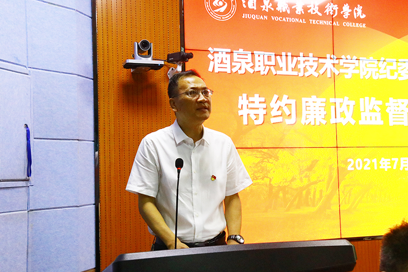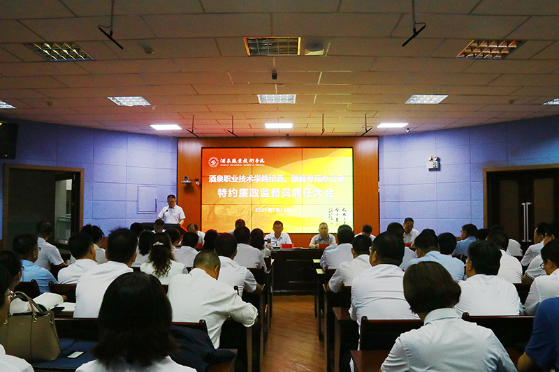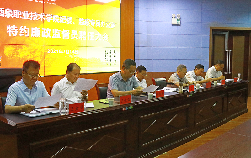 为深入推进学校纪检监察体制改革,完善日常监督机制,充分发挥民主监督、群众监督优势,让广大教职工参与到日常监督中,7月14日,酒泉职业技术学院特约廉政监督员聘任大会召开。30名教职员工被聘为特约廉政监督员并颁发了聘书,校党委班子成员出席会议。党委书记、校长易志军和党委委员、纪委书记、监察专员魏韡分别讲话。
