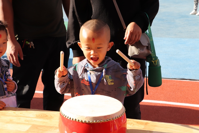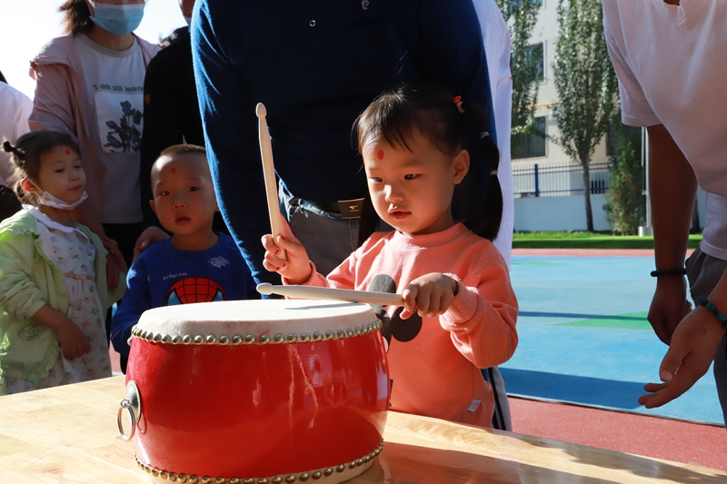 与会嘉宾依次为幼儿朱砂启智—开笔增智—击鼓传智,祈愿宝宝眼明心亮,礼润人生,从今启蒙。这些寓意深远的传统文化,寄寓着师者仁心的美好愿望,希望小朋友快乐成长、健康幸福,每天都像花儿一样开放,像阳光一样灿烂,开心快乐度过每一天。市教育局副局长陶英江为幼儿园切糕开园。