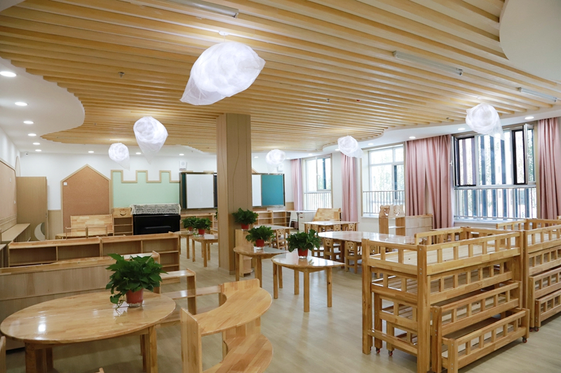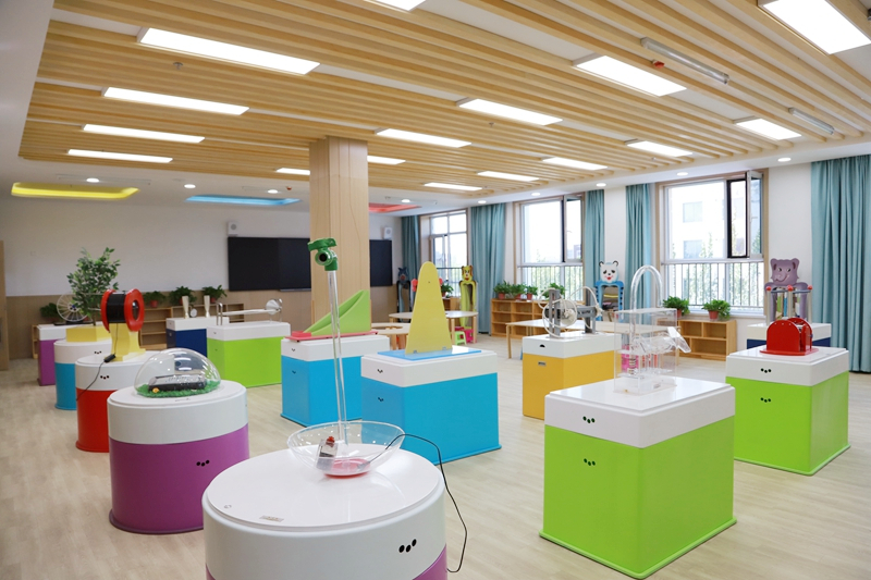 典礼结束后,与会嘉宾还实地查看了幼儿活动室、特色教室、多功能实训室、图书室和厨房餐厅等基础设施。