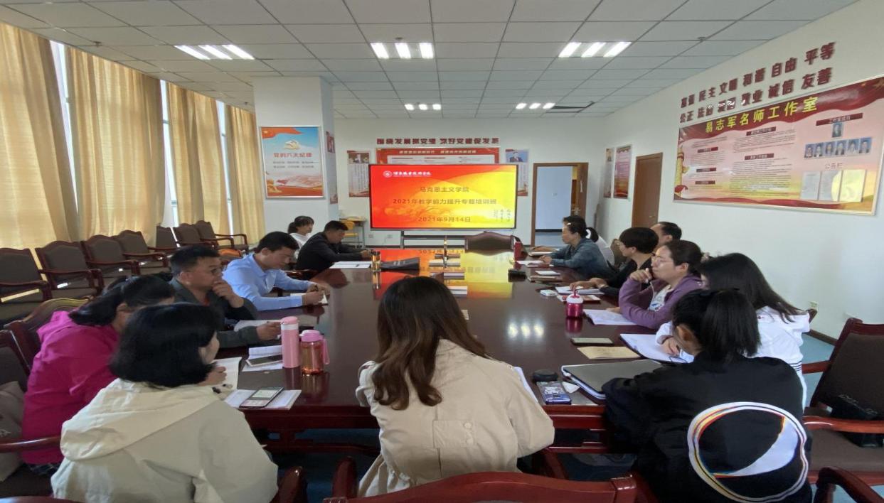 为全面贯彻落实全国教育大会精神和习近平总书记在学校思政课教师座谈会上的重要讲话精神,进一步提升马克思主义学院教师的教学技能和水平,9月14日至24日,马克思主义学院举办了2021年教学能力提升专题培训班。