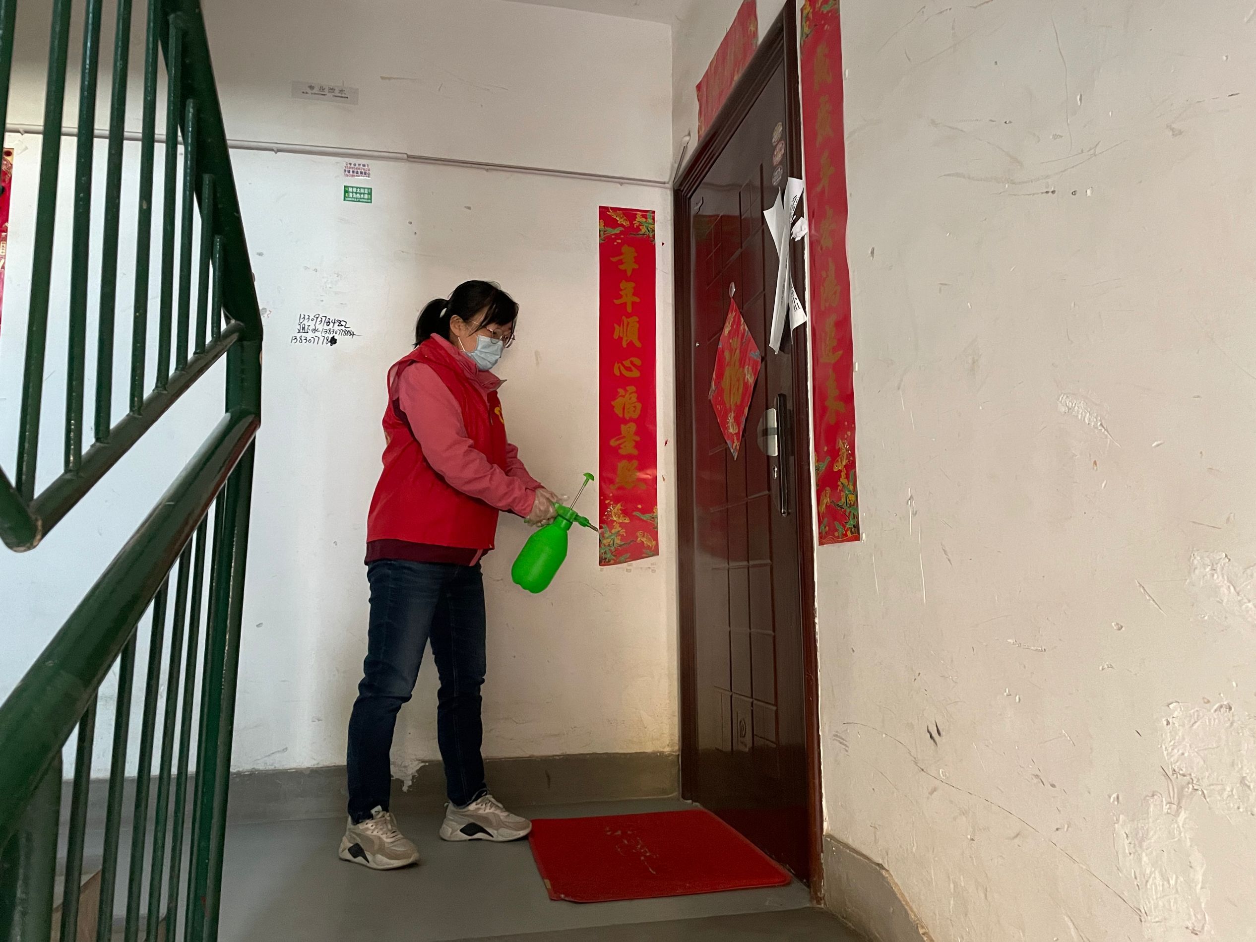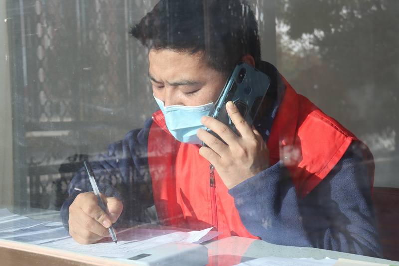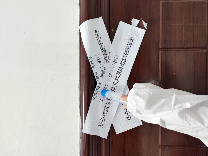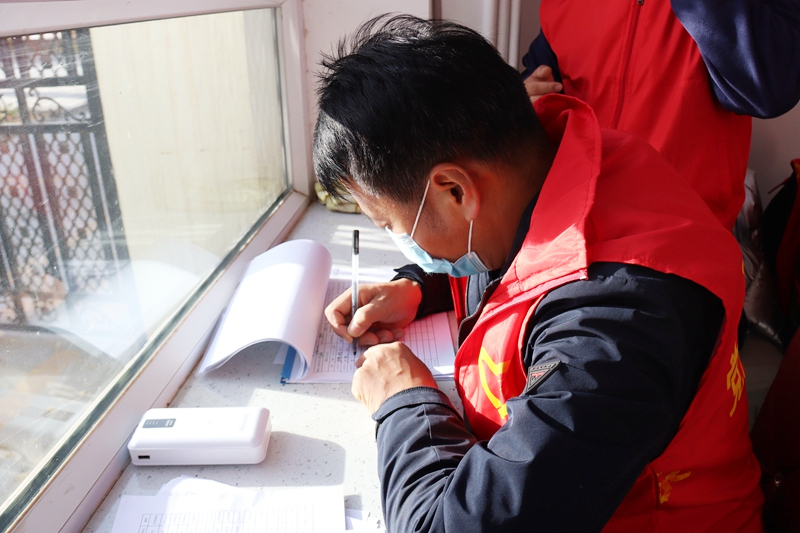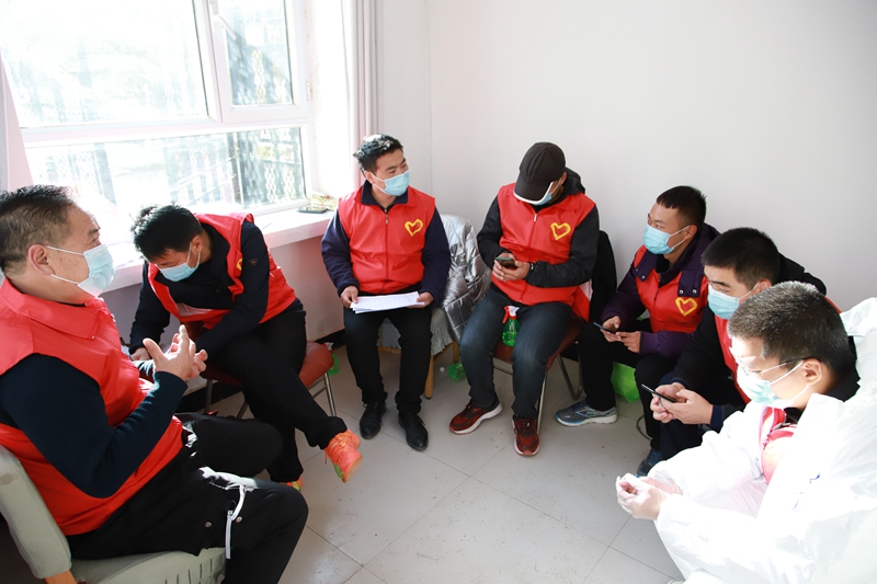疫情就是命令,防控就是责任。接到紧急通知,14名志愿者迅速投入疫情防控工作一线,坚守岗位,勤奋工作,一切行动听从指挥,自觉服从统一管理。他们不惧冬日严寒,以身作则、争当表率,严格按照疫情防控工作要求,佩戴党徽、着红马甲、穿防护服,在公寓门口严格执行24小时值班值守、扫码测温、疫情排查、建立台账等工作,严守“外防输入”第一道关口。
