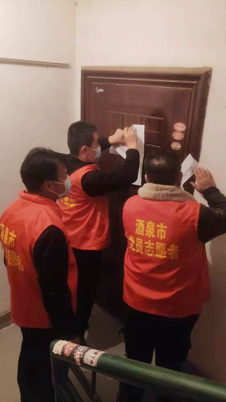 要闻快递 > 正文自本次疫情发生以来,学校党委根据市委、市政府疫情防控工作总体要求,第一时间组织14名党员志愿者深入联系点解放路社区、肃州路社区、广厦社区开展疫情防控志愿服务活动,以主动担当的实际行动践行共产党员的初心和使命。