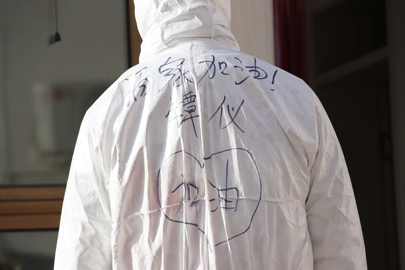 旅游与烹饪学院党支部教师尉志强本该守在妻子的身旁,等待孩子降生的第一声啼哭。然而,他却毅然穿上厚重的防护服,坚守在防疫一线,用一名党员的坚守和年轻人的乐观和疫情做着最坚决的斗争。他说:这是我第一次穿防护服,为了不浪费防护服,我不敢喝水,不敢上厕所,每天忙到很晚才敢脱下防护服去吃饭,我真心地向医护人员们致敬,你们辛苦了!”