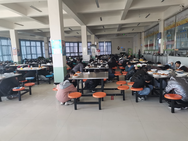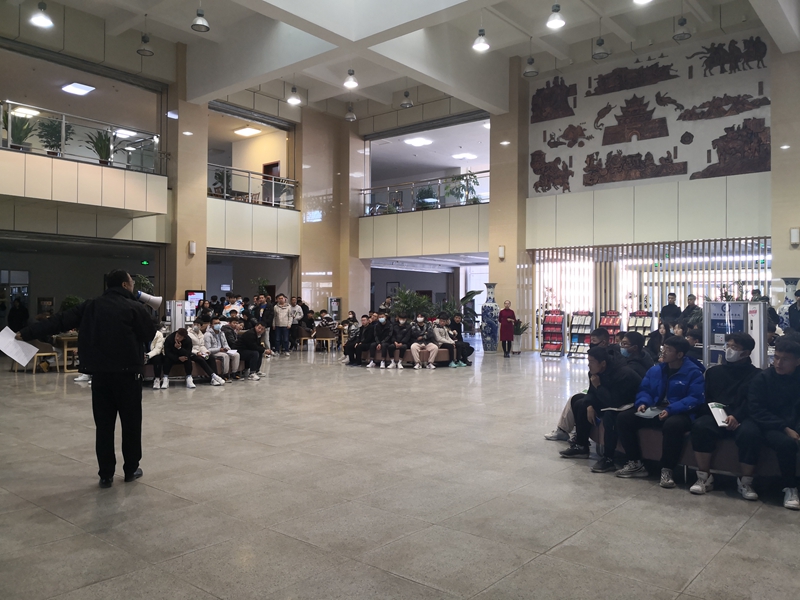 11月29日17:00,随着警报声响起,指挥长魏韡宣布演练开始,并用喇叭通知:“地震应急疏散演练开始,现在地震来袭,紧急避震”,同学们就近躲避在课桌下、床铺下,并用柔软物品保护头部。30秒后,主震结束,安全疏导员立即组织疏散,学生双手护头,迅速按照既定紧急疏散路线有序、安全撤离至指定安全地带,在校园空旷处集合整队、清点人数,统计被困师生人数,上报数据,并对受伤师生进行紧急医疗救治和简单伤情处理。此次演练采取分时段、分场地、分人员,依次开展,分别在教学楼、学生公寓、学生餐厅、图书馆、实训中心和体育馆等区域,在白天和晚上开展了避险科目和疏散科目的应急疏散演练。据统计,共有11000余名师生员工参与了此次应急疏散演练活动,达到了预期目的,取得了圆满成功。