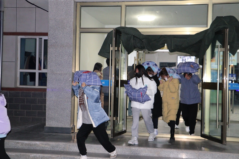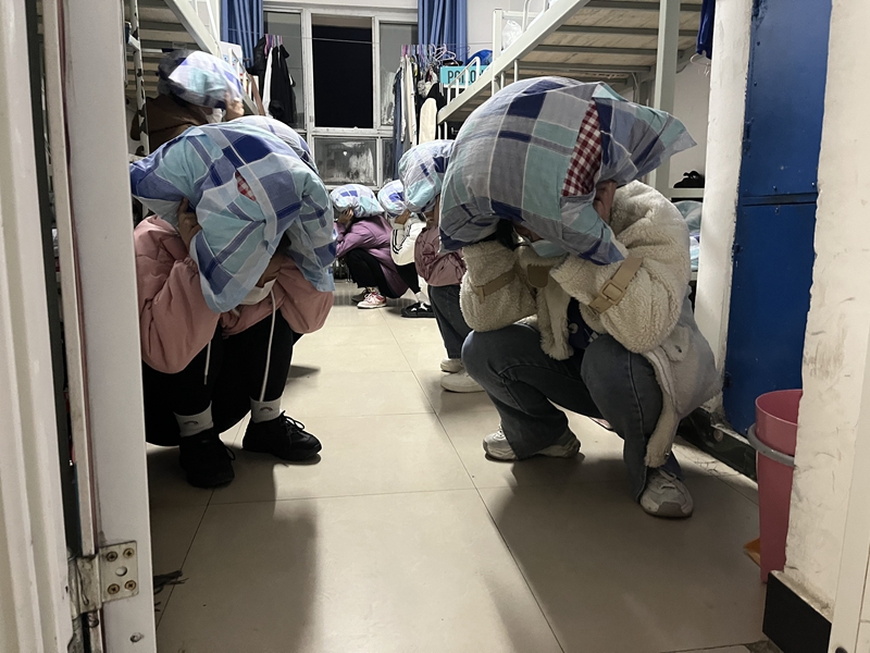 机电工程学院学生张富说:本次地震逃生演练中,学校专门设置夜间就寝场景,我们在宿舍内的坚固庇护物下躲避,待地震结束后,用枕头保护头部,在公寓安全员统一指挥下有序撤离宿舍,向就近无建筑物的开阔地带集结,以避免地震带来的二次伤害,切实提高了夜间就寝状态下应急逃生的能力。